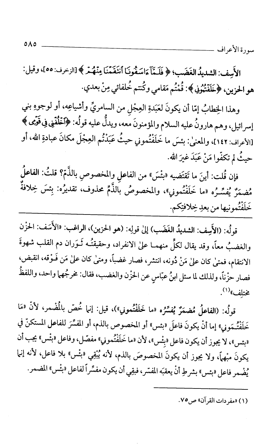 الأَسِف: الشديدُ الغضب؛ (فَلَمَّا آَسَفُونَا انْتَقَمْنَا مِنْهُمْ) [الزخرف: 55]، وقيل: هو الحزين، (خَلَفْتُمُوني): قمتم مقامي وكنتم خلفائي من بعدي.