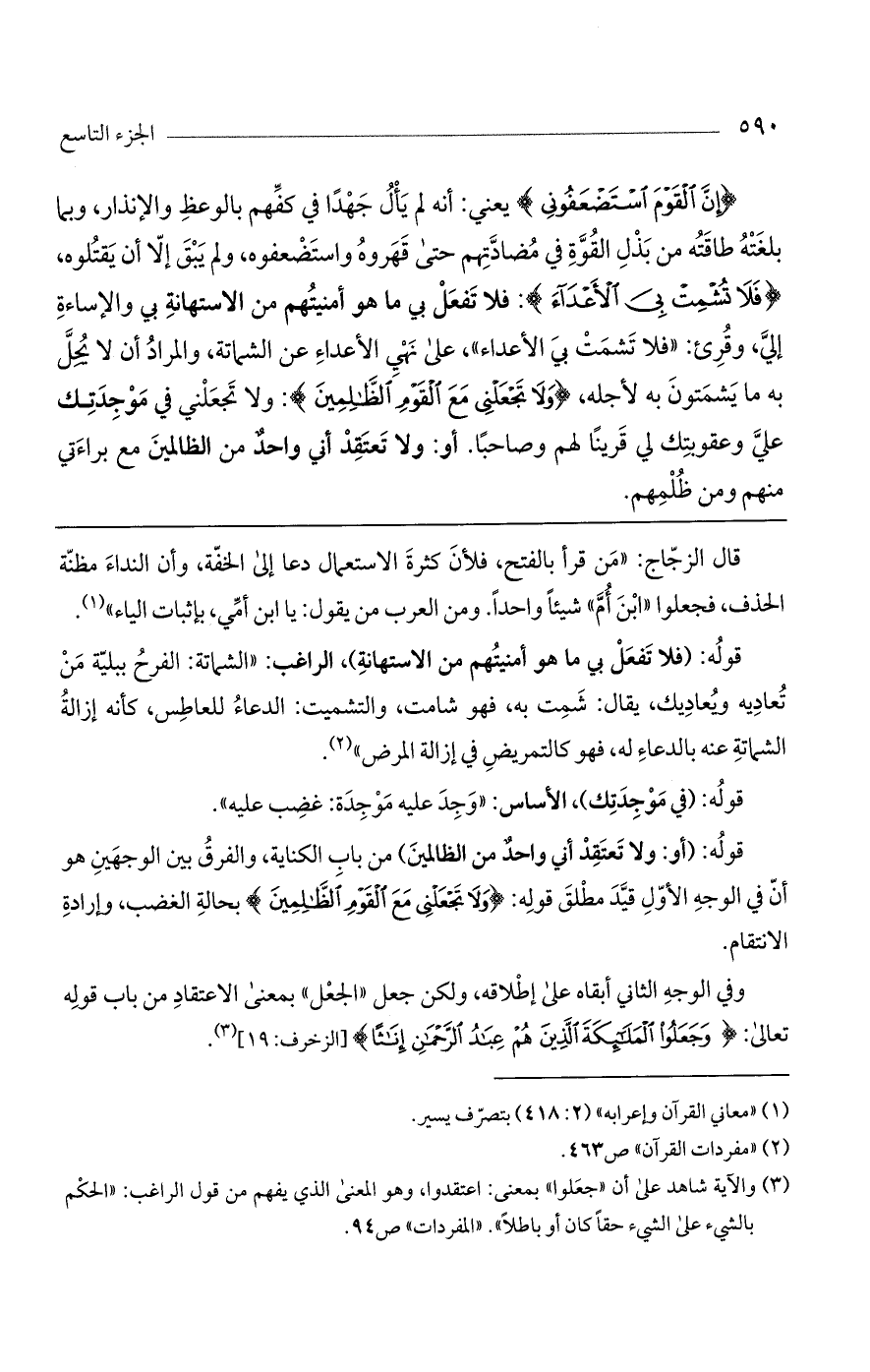 قوله: (أو: ولا تعتقد أني واحد من الظالمين) من باب الكناية، والفرق بين الوجهين هو أن في الوجه الأول قيد مطلق قوله: (ولا تَجْعَلْنِي مَعَ القَوْمِ الظَّالِمِينَ) بحالة الغضب، وإرادة الانتقام.