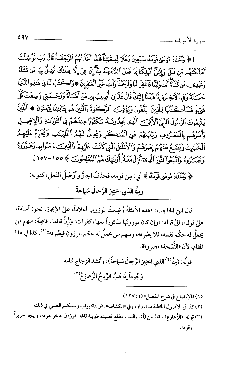 [(وَاخْتارَ مُوسى قَوْمَهُ سَبْعِينَ رَجُلاً لِمِيقاتِنا فَلَمَّا أَخَذَتْهُمُ الرَّجْفَةُ قالَ رَبِّ لَوْ شِئْتَ أَهْلَكْتَهُمْ مِنْ قَبْلُ وَإِيَّايَ أَتُهْلِكُنا بِما فَعَلَ السُّفَهاءُ مِنَّا إِنْ هِيَ إِلاَّ فِتْنَتُكَ تُضِلُّ بِها مَنْ تَشاءُ وَتَهْدِي مَنْ تَشاءُ أَنْتَ وَلِيُّنا فَاغْفِرْ لَنا وَارْحَمْنا وَأَنْتَ خَيْرُ الْغافِرِين* وَاكْتُبْ لَنا فِي هذِهِ الدُّنْيا حَسَنَةً وَفِي الْآخِرَةِ إِنَّا هُدْنا إِلَيْكَ قالَ عَذابِي أُصِيبُ بِهِ مَنْ أَشاءُ وَرَحْمَتِي وَسِعَتْ كُلَّ شَيْءٍ فَسَأَكْتُبُها لِلَّذِينَ يَتَّقُونَ وَيُؤْتُونَ الزَّكاةَ وَالَّذِينَ هُمْ بِآياتِنا يُؤْمِنُونَ* الَّذِينَ يَتَّبِعُونَ الرَّسُولَ النَّبِيَّ الْأُمِّيَّ الَّذِي يَجِدُونَهُ مَكْتُوباً عِنْدَهُمْ فِي التَّوْراةِ وَالْإِنْجِيلِ يَامُرُهُمْ بِالْمَعْرُوفِ وَيَنْهاهُمْ عَنِ الْمُنْكَرِ وَيُحِلُّ لَهُمُ الطَّيِّباتِ وَيُحَرِّمُ عَلَيْهِمُ الْخَبائِثَ وَيَضَعُ عَنْهُمْ إِصْرَهُمْ وَالْأَغْلالَ الَّتِي كانَتْ عَلَيْهِمْ فَالَّذِينَ آمَنُوا بِهِ وَعَزَّرُوهُ وَنَصَرُوهُ وَاتَّبَعُوا النُّورَ الَّذِي أُنْزِلَ مَعَهُ أُولئِكَ هُمُ الْمُفْلِحُونَ)].