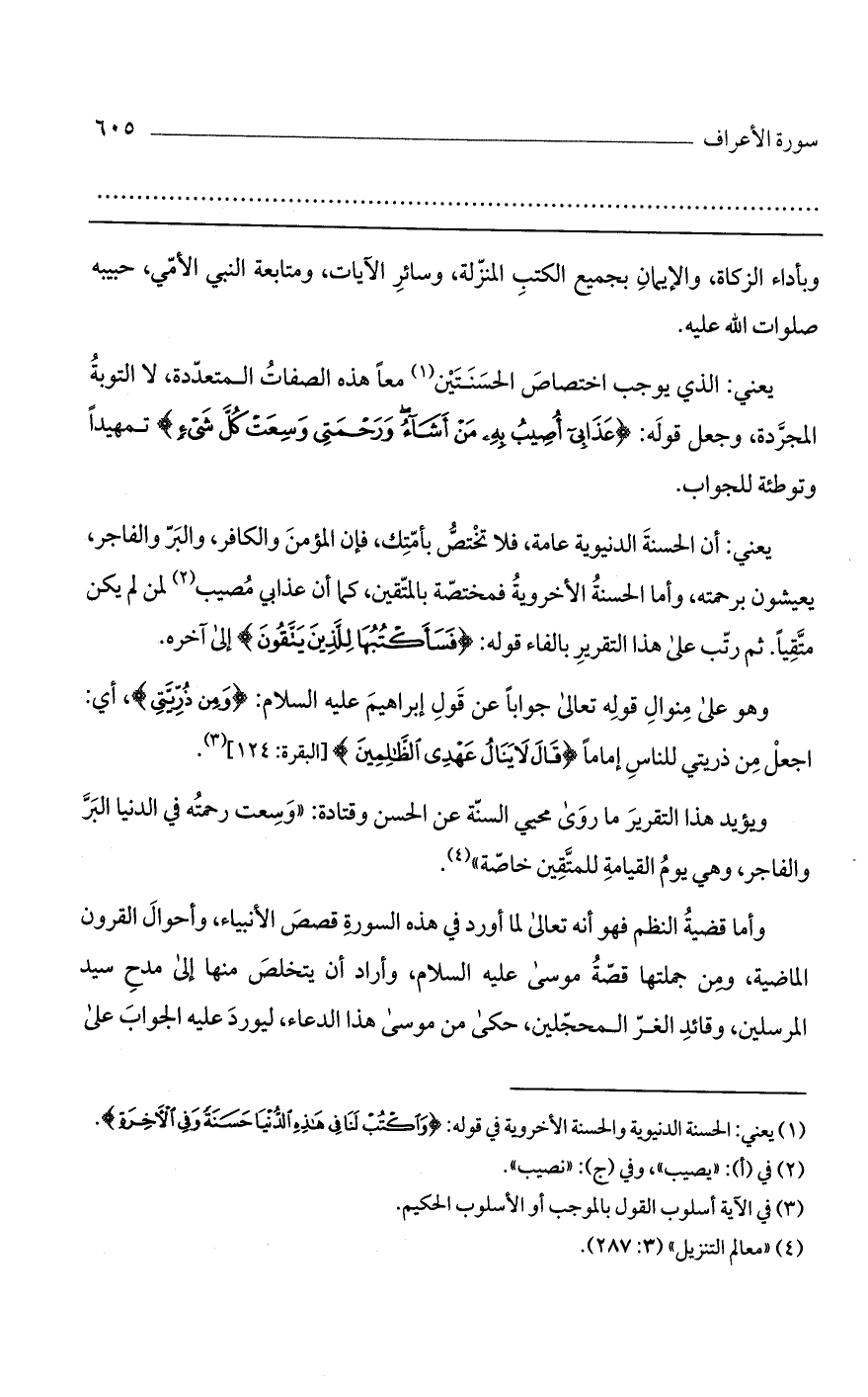 يعني: الذي يوجب اختصاص الحسنتين معاً هذه الصفات المتعددة، لا التوبة المجردة، وجعل قوله: (عَذَابِي أُصِيبُ بِهِ مَنْ أَشَاءُ ورَحْمَتِي وسِعَتْ كُلَّ شَيْءٍ) تمهيداً وتوطئة للجواب.