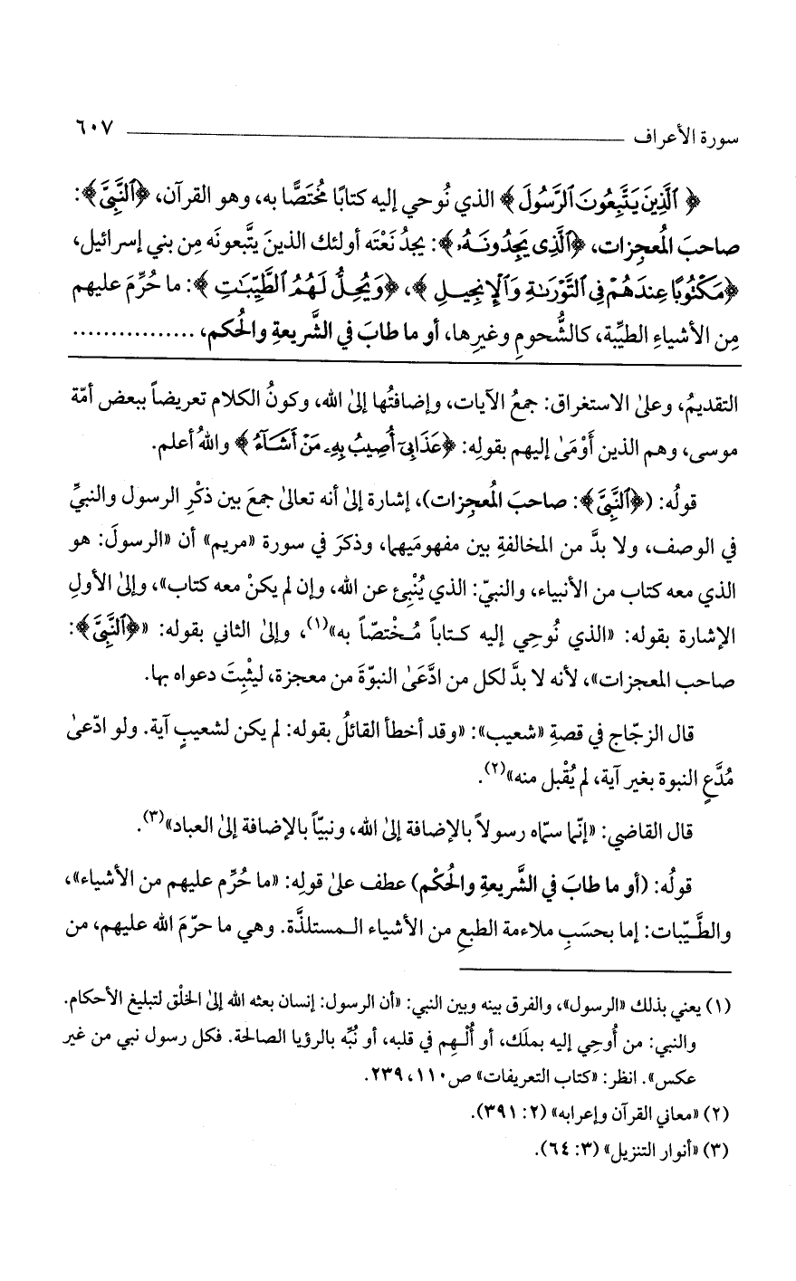 (الَّذِينَ يَتَّبِعُونَ الرَّسُولَ) الذي نوحي إليه كتاباً مختصاً به، وهو القرآن، (النَّبِيَّ): صاحب المعجزات، (الَّذِي يَجِدُونَهُ): يجد نعته أولئك الذين يتبعونه من بني إسرائيل، (مَكْتُوباً عِنْدَهُمْ فِي التَّوْراةِ وَالْإِنْجِيلِ)، (وَيُحِلُّ لَهُمُ الطَّيِّباتِ): ما حُرِّم عليهم من الأشياء الطيبة، كالشحوم وغيرها، أو ما طاب في الشريعة والحكم، ........