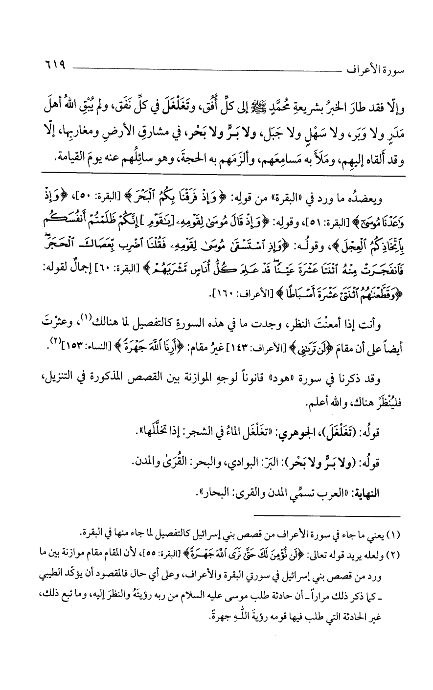وأنت إذا أمعنت النظر، وجدت ما في هذه السورة كالتفصيل لما هنالك، وعثرت أيضاً على أن مقام (لن تراني) [الأعراف: 143] غير مقام: (أرنا الله جهرةً) [النساء: 153].