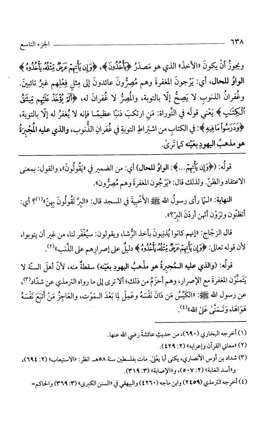 قوله: (والذي عليه المجبرة هو مذهب اليهود بعينه) سقطة منه، لأن أهل السنة لا يتمنون المغفرة مع الإصرار، وهم أحزم من ذلك؛ ألا ترى إلى ما رواه الترمذي عن شداد، عن رسول الله صلي الله عليه وسلم: "الكيس من دان نفسه وعمل لما بعد الموت، والعاجز من أتبع نفسه هواها، وتمنى على الله".