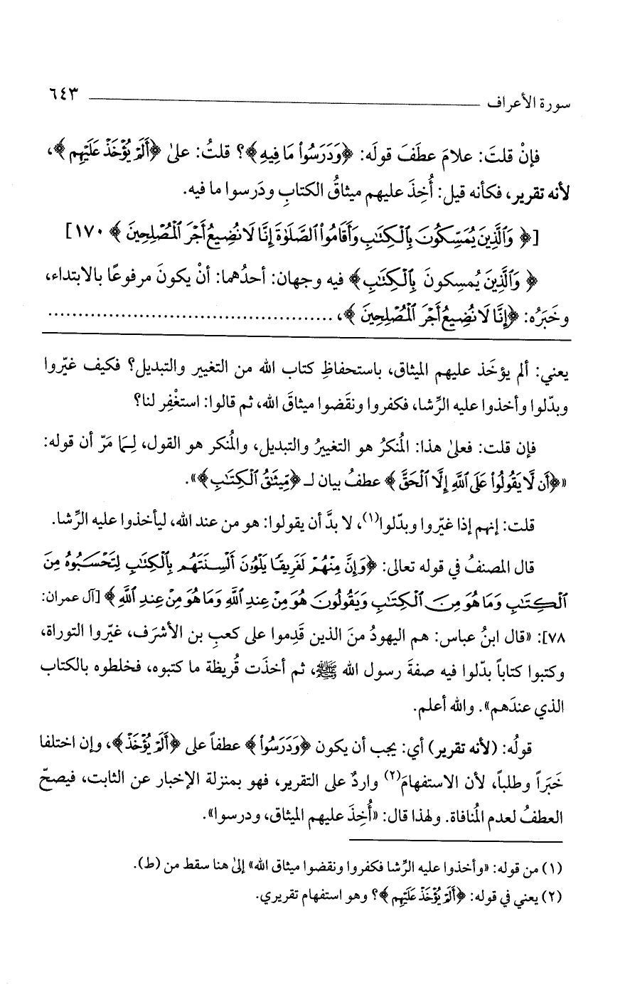 فإن قلت: فعلى هذا: المنكر هو التغيير والتبديل، والمنكر هو القول، لما مر أن قوله: " (أن لا يقولوا على الله إلا الحق) عطف بيان لـ (ميثاق الكتاب) ".