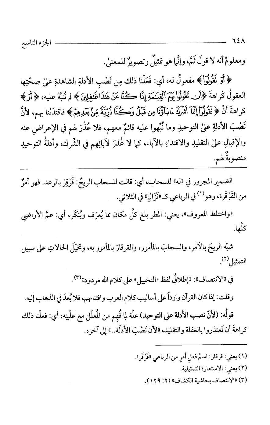 قوله: (لأن نصب الأدلة على التوحيد) علة لما فهم من المعلل مع عليته، أي: فعلنا ذلك كراهة أن تعتذروا بالغفلة والتقليد، "لأن نصب الأدلة .. " إلى آخره.