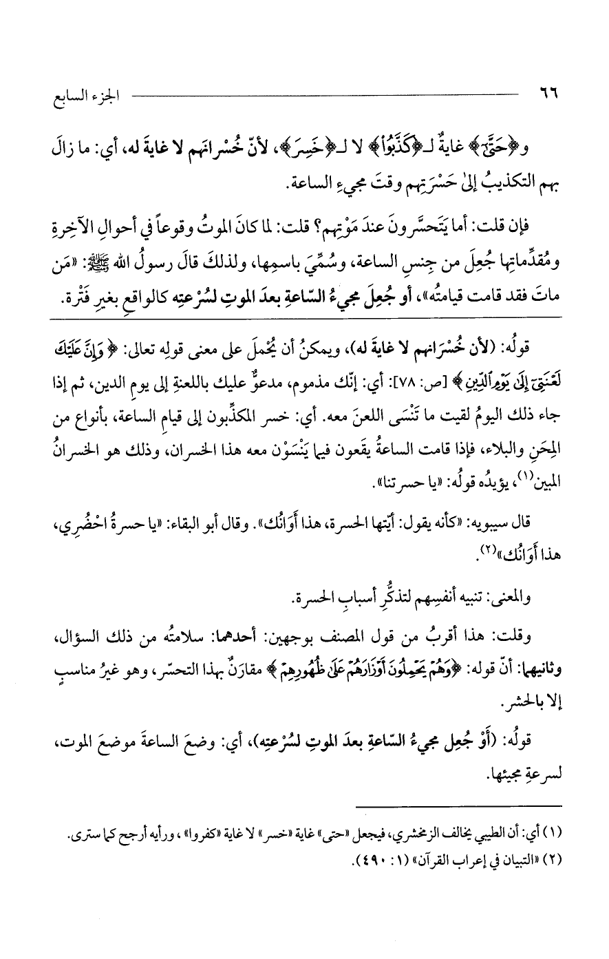 وقلت: هذا أقرب من قول المصنف بوجهين: أحدهما: سلامته من ذلك السؤال، وثانيهما: أن قوله: {وهُمْ يَحْمِلُونَ أَوْزَارَهُمْ عَلَى ظُهُورِهِمْ {مقارن بهذا التحسر، وهو غير مناسب إلا بالحسر.