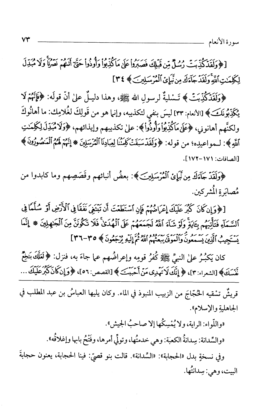 [(وَلَقَدْ كُذِّبَتْ رُسُلٌ مِنْ قَبْلِكَ فَصَبَرُوا عَلى ما كُذِّبُوا وَأُوذُوا حَتَّى أَتاهُمْ نَصْرُنا وَلا مُبَدِّلَ لِكَلِماتِ اللَّهِ وَلَقَدْ جاءَكَ مِنْ نَبَإِ الْمُرْسَلِينَ)].