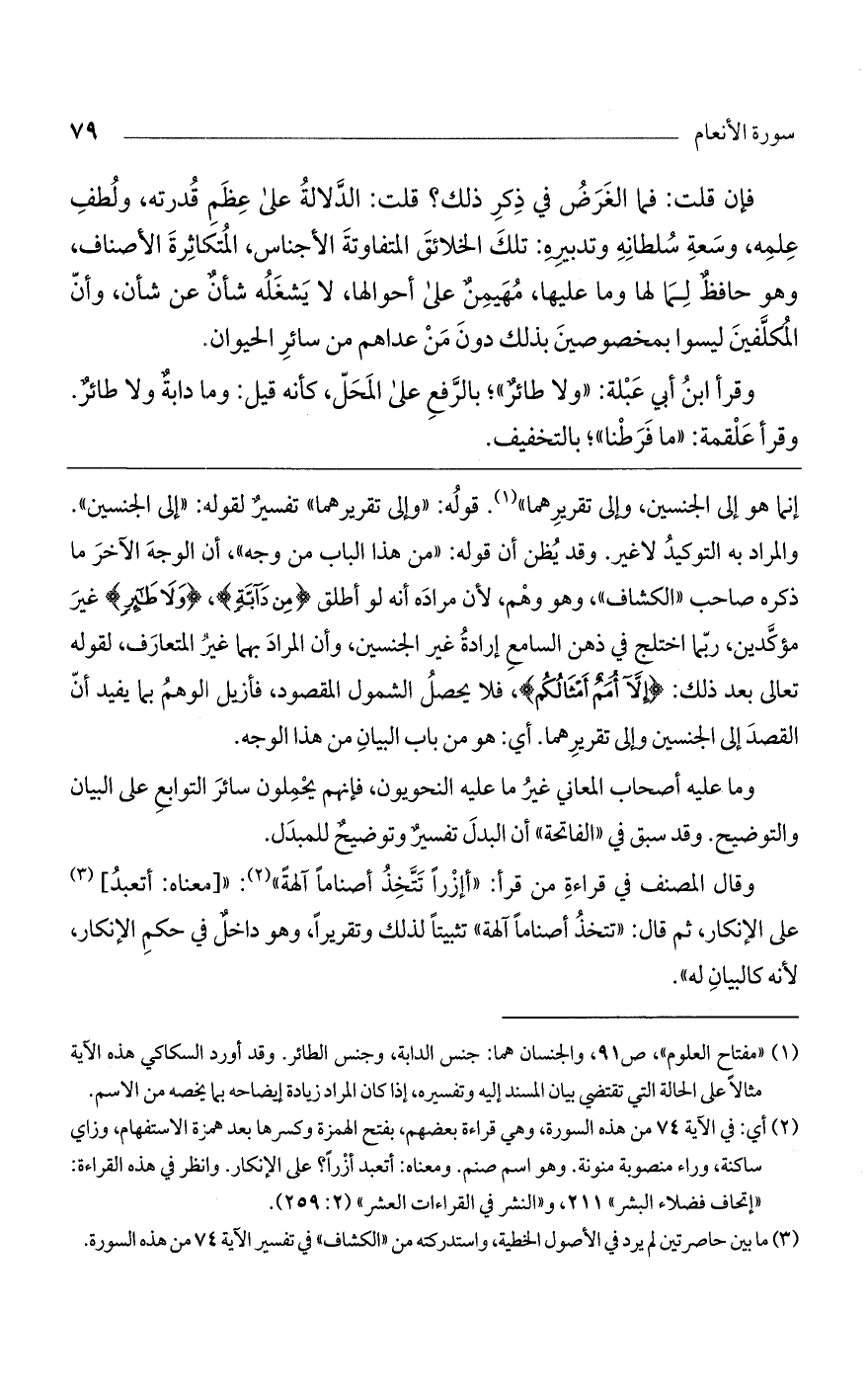 وقال المصنف في قراءة من قرأ: "أإزرا تتخذ أصناماً آلهة": " [معناه: أتعبد] على الإنكار، ثم قال: "تتخذ أصناماً آلهة" تثبيتاً لذلك وتقريراً، وهو داخل في حكم الإنكار، لأنه كالبيان له".