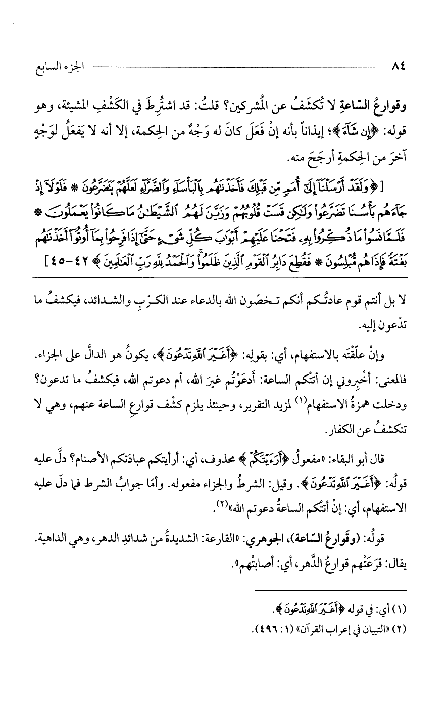 وقوارع الساعة لا تكشف عن المشركين؟ قلت: قد اشترط في الكشف المشيئة، وهو قوله: (إِنْ شاءَ)؛ إيذاناً بأنه إن فعل كان له وجه من الحكمة، إلا أنه لا يفعل لوجهٍ آخر من الحكمة أرجح منه.