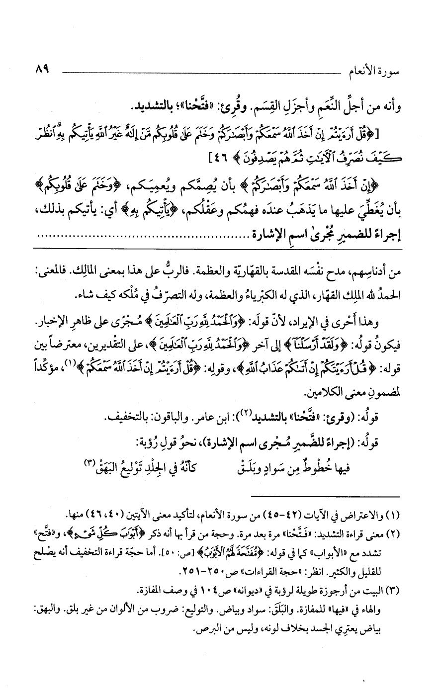 وهذا أحرى في الإيراد، لأن قوله: {والْحَمْدُ لِلَّهِ رَبِّ العَالَمِينَ {مجرى على ظاهر الإخبار. فيكون قوله: {ولَقَدْ أَرْسَلْنَا {إلى آخر {والْحَمْدُ لِلَّهِ رَبِّ العَالَمِينَ {، على التقديرين، معترضاً بين قوله: {قُلْ أَرَأَيْتَكُمْ إنْ أَتَاكُمْ عَذَابُ اللَّهِ {، وقوله: {قُلْ أَرَأَيْتُمْ إنْ أَخَذَ اللَّهُ سَمْعَكُمْ {، مؤكداً لمضمون معنى الكلامين.