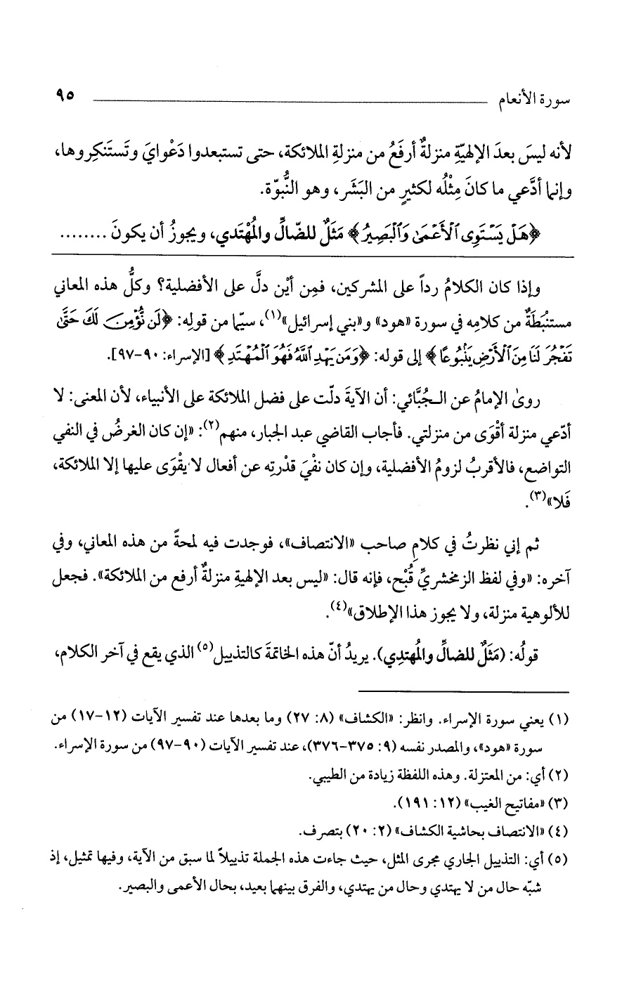 ثم إني نظرت في كلام صاحب "الانتصاف"، فوجدت فيه لمحةً من هذه المعاني، وفي آخره: "وفي لفظ الزمخشري قبح، فإنه قال: "ليس بعد الإلهية منزلة أرفع من الملائكة". فجعل للألوهية منزلة، ولا يجوز هذا الإطلاق".
