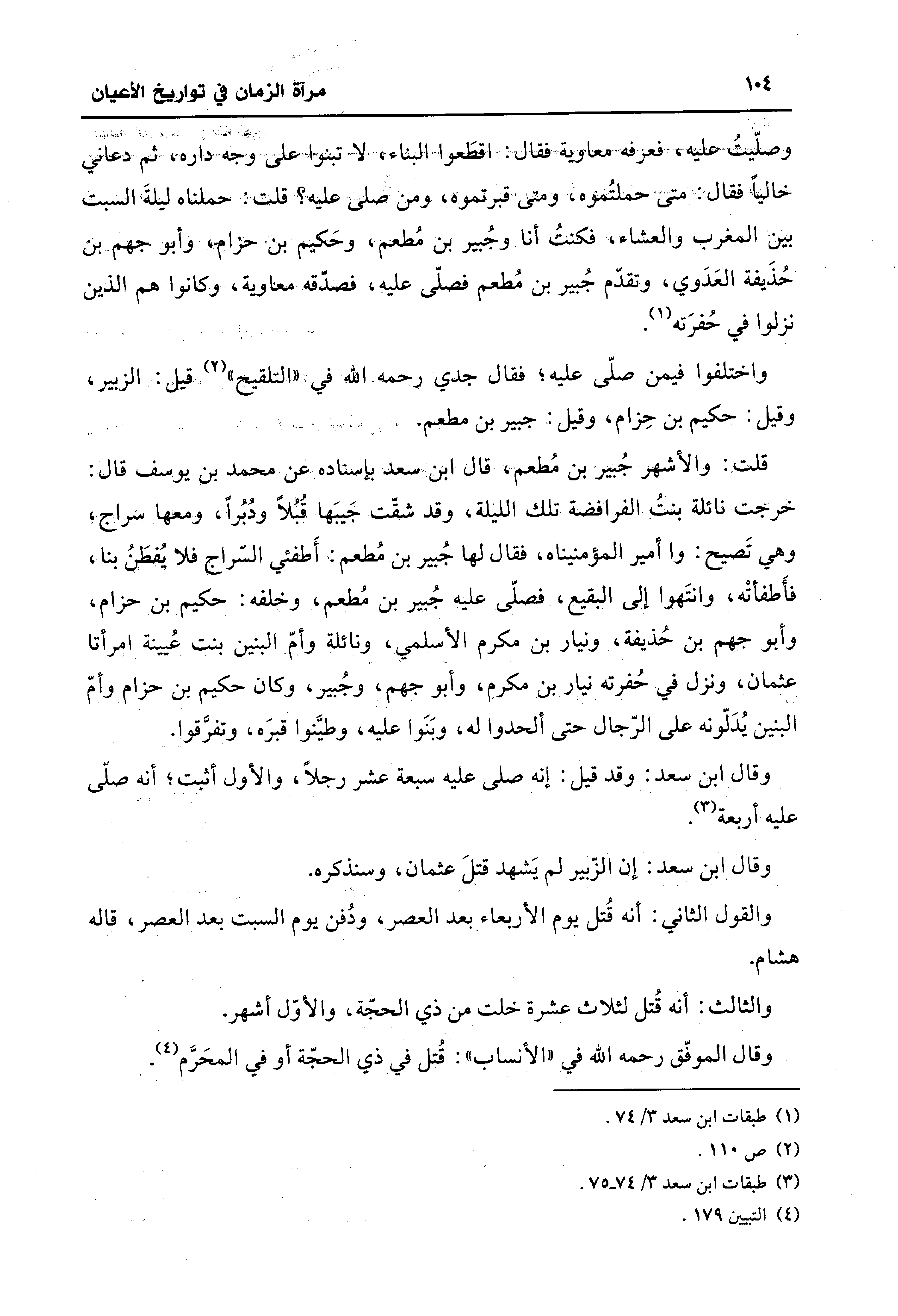 وقال ابن سعد: إن الزّبير لم يَشهد قتلَ عثمان، وسنذكره.