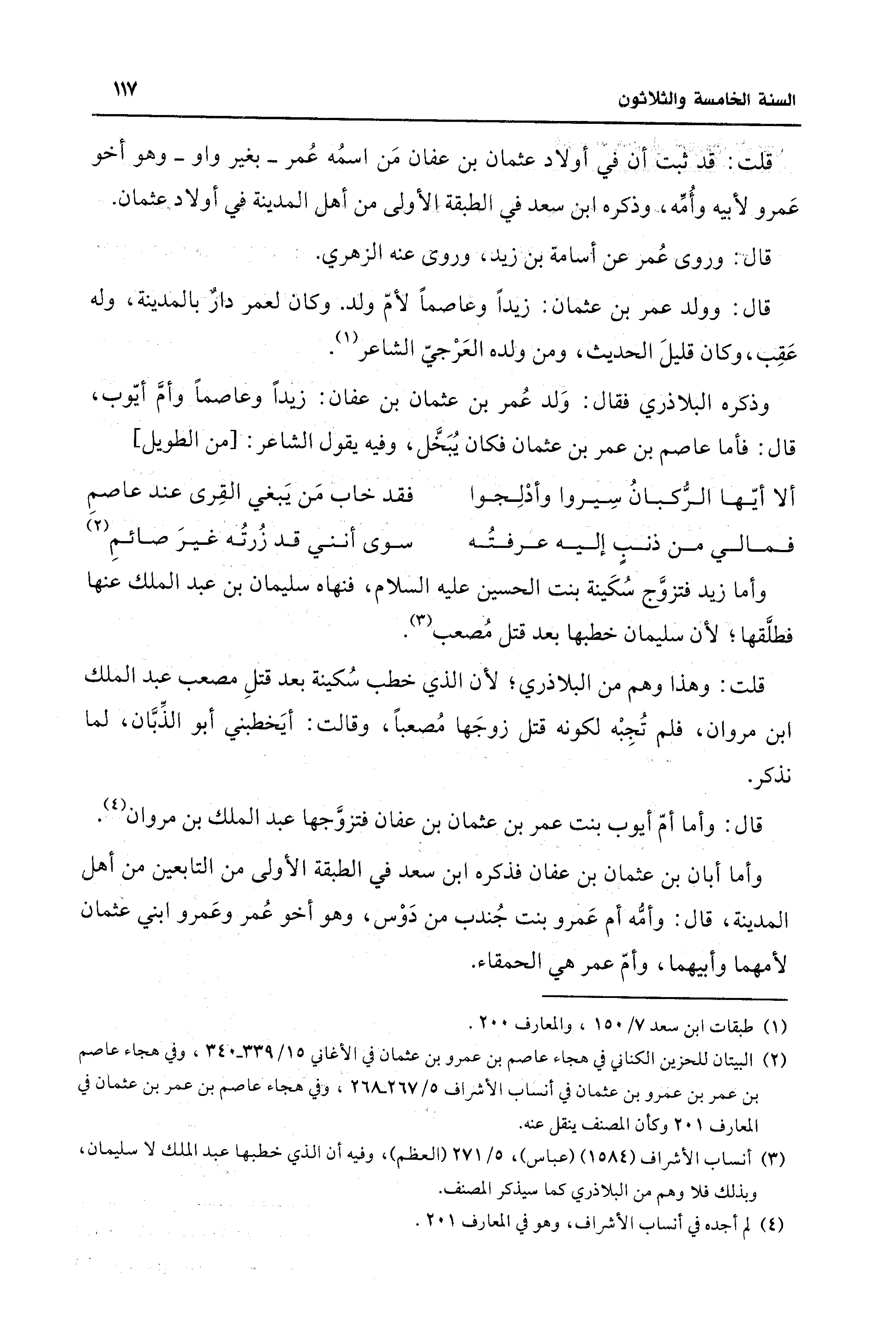 قلت: قد ثبت أن في أولاد عثمان بن عفان مَن اسمُه عُمر -بغير واو- وهو أخو عَمرو لأبيه وأُمِّه، وذكره ابن سعد في الطبقة الأولى من أهل المدينة في أولاد عثمان.