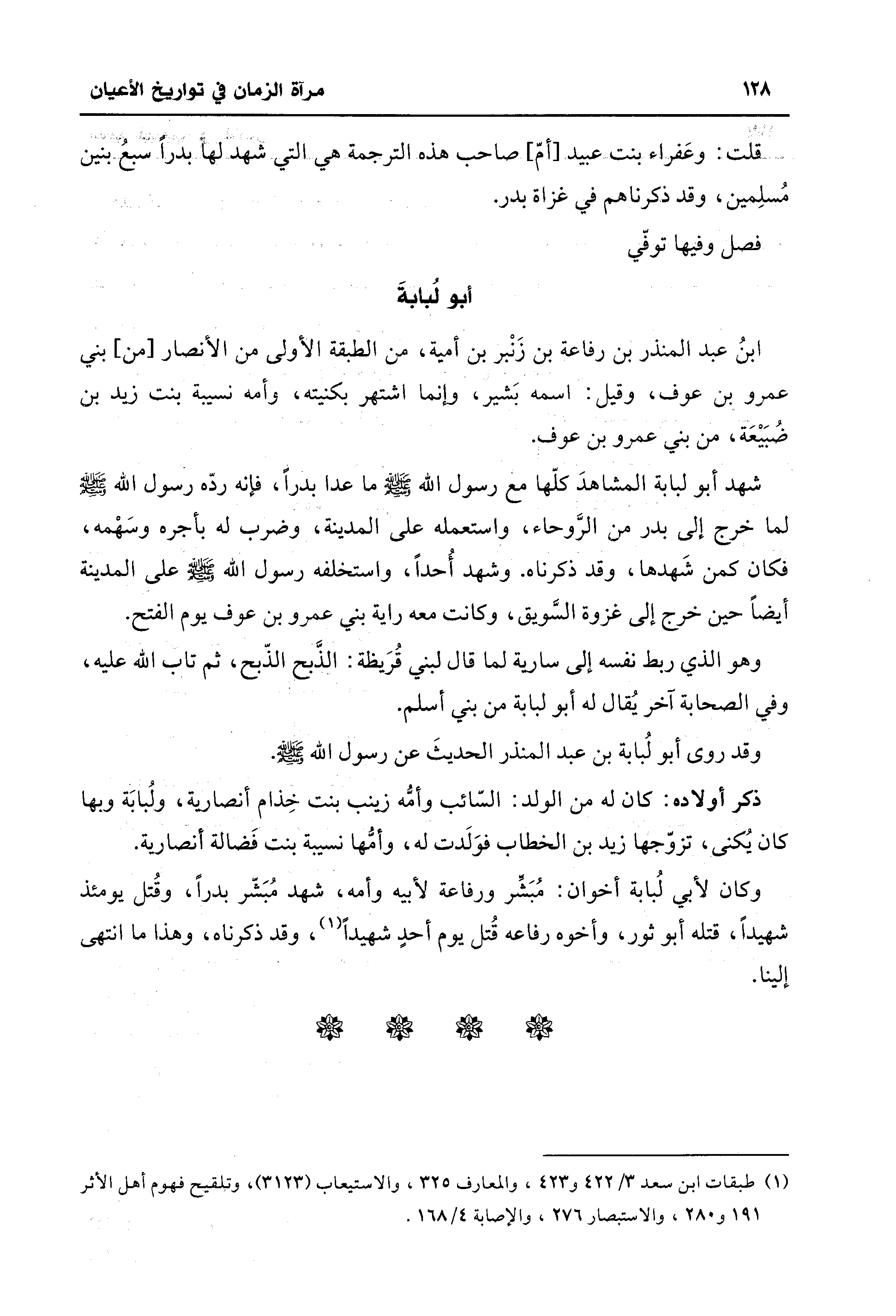 (¬1) طبقات ابن سعد 3/ 422 و 423، والمعارف 325، والاستيعاب (3123)، وتلقيح فهوم أهل الأثر 191 و 280، والاستبصار 276، والإصابة 4/ 168.