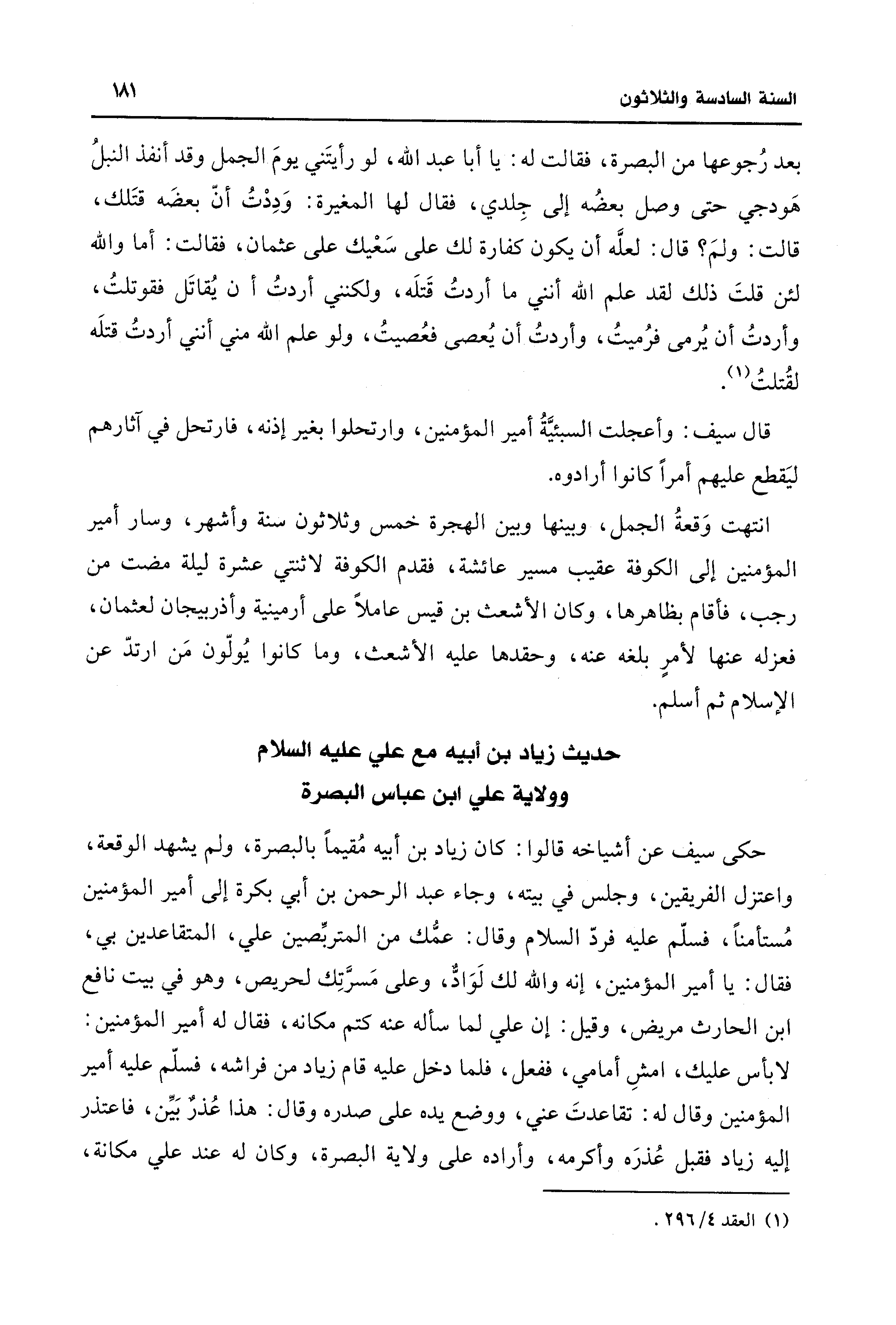 حديث زياد بن أبيه مع علي - عليه السلام - وولاية علي ابن عباس البصرة