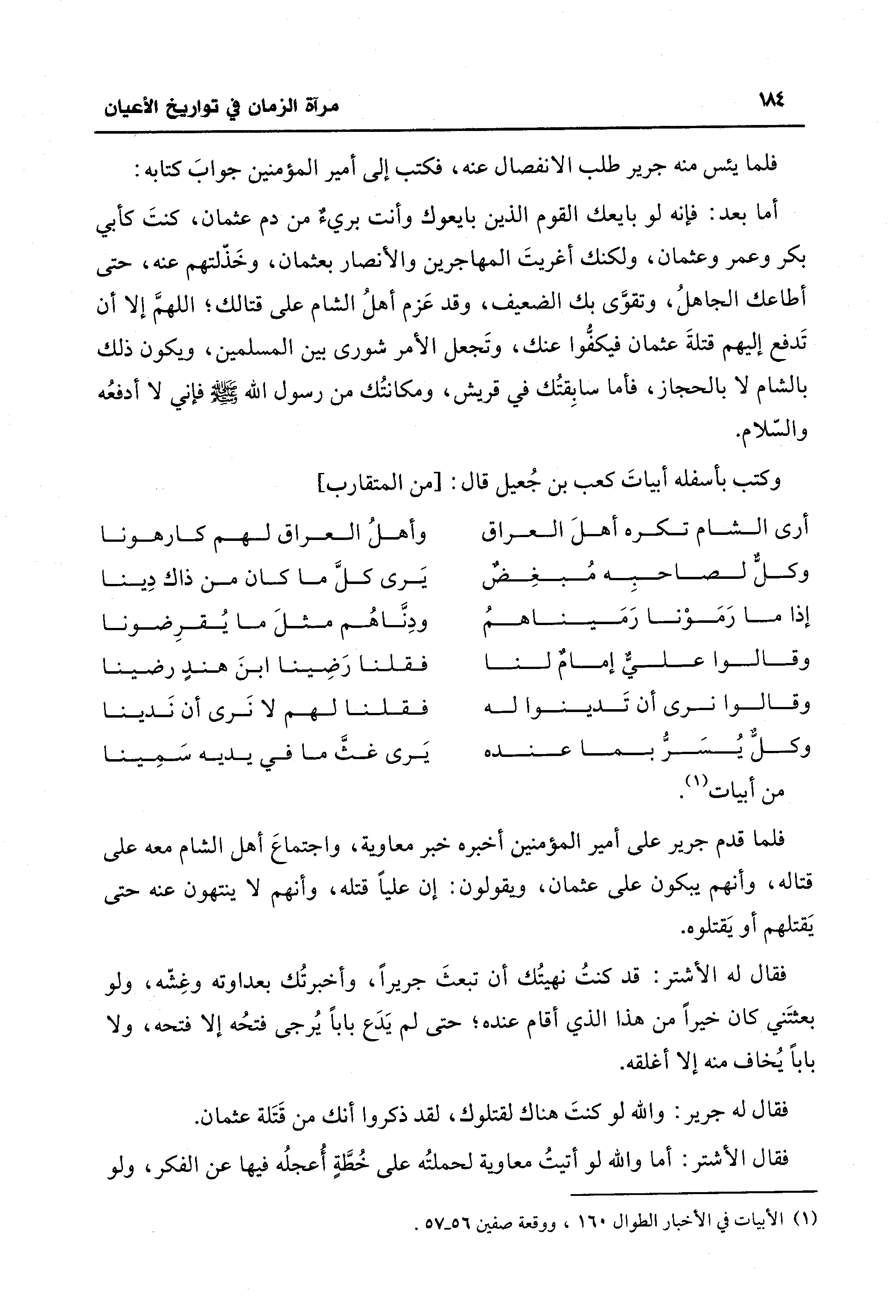 فقال له جرير: والله لو كنتَ هناك لقتلوك، لقد ذكروا أنك من قَتَلة عثمان.