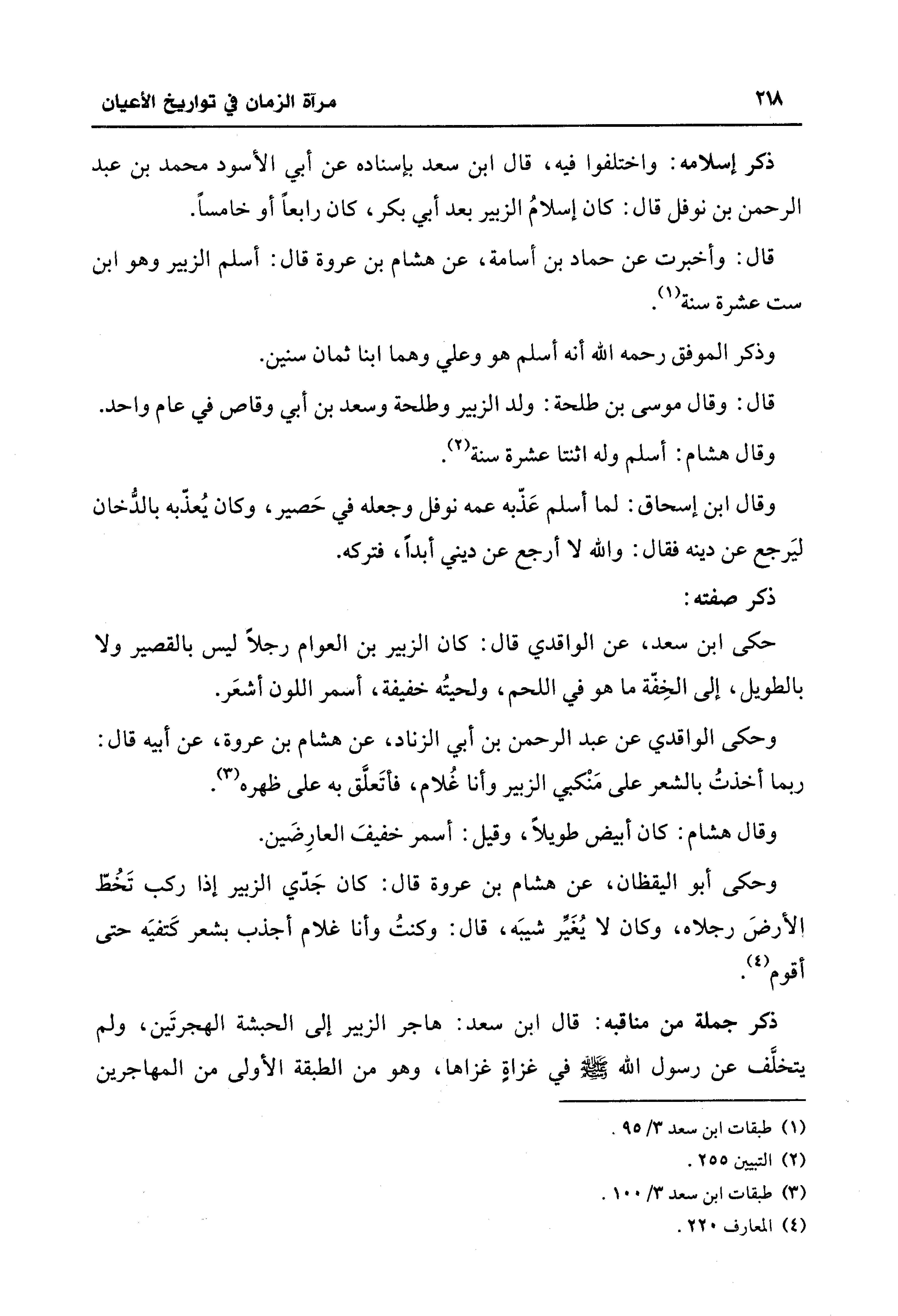ذكر إسلامه: واختلفوا فيه، قال ابن سعد بإسناده عن أبي الأسود محمد بن عبد الرحمن بن نوفل قال: كان إسلامُ الزبير بعد أبي بكر، كان رابعًا أو خامسًا.