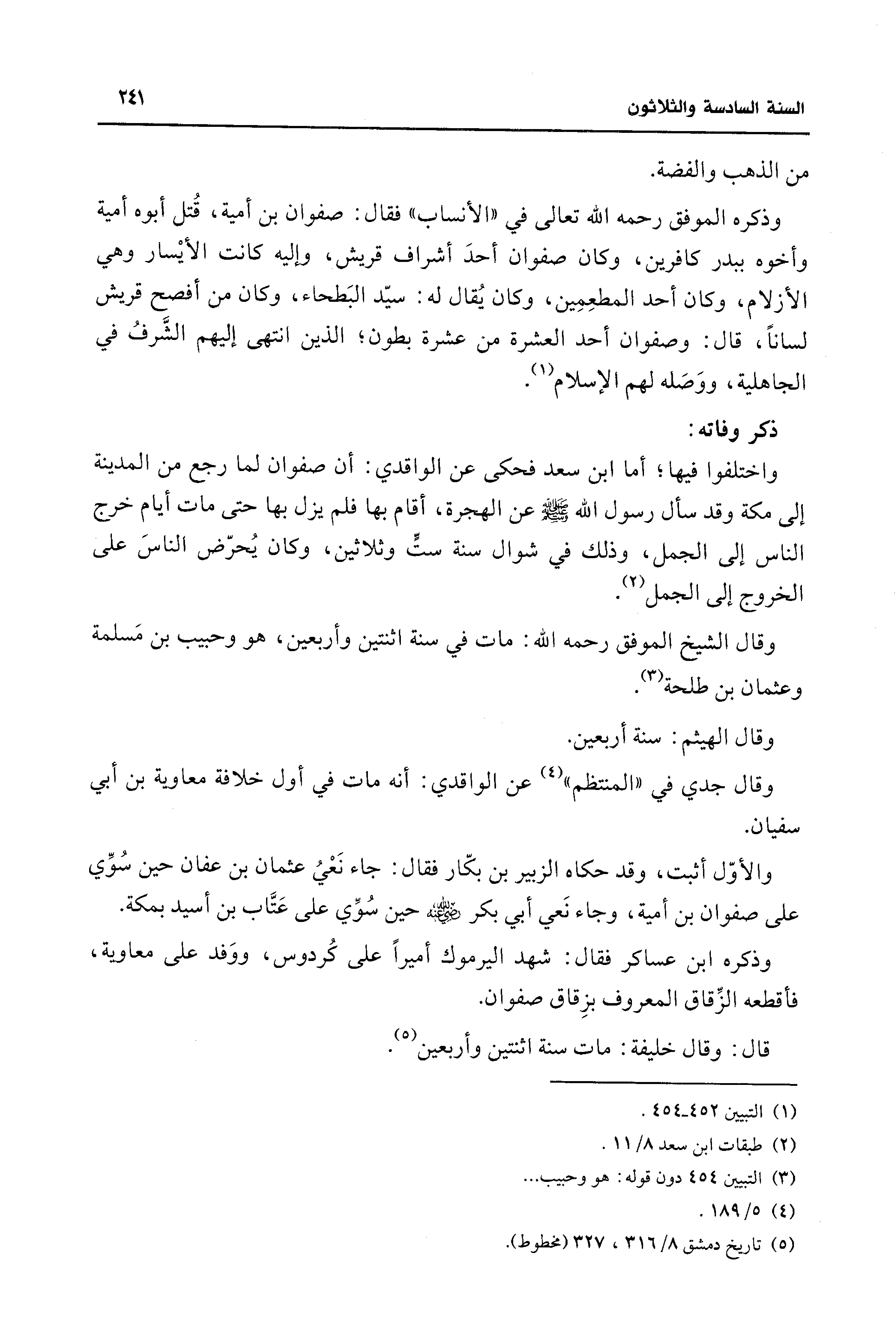 وقال الشيخ الموفق رحمه الله: مات في سنة اثنتين وأربعين، هو وحبيب بن مَسلمة وعثمان بن طلحة (¬3).