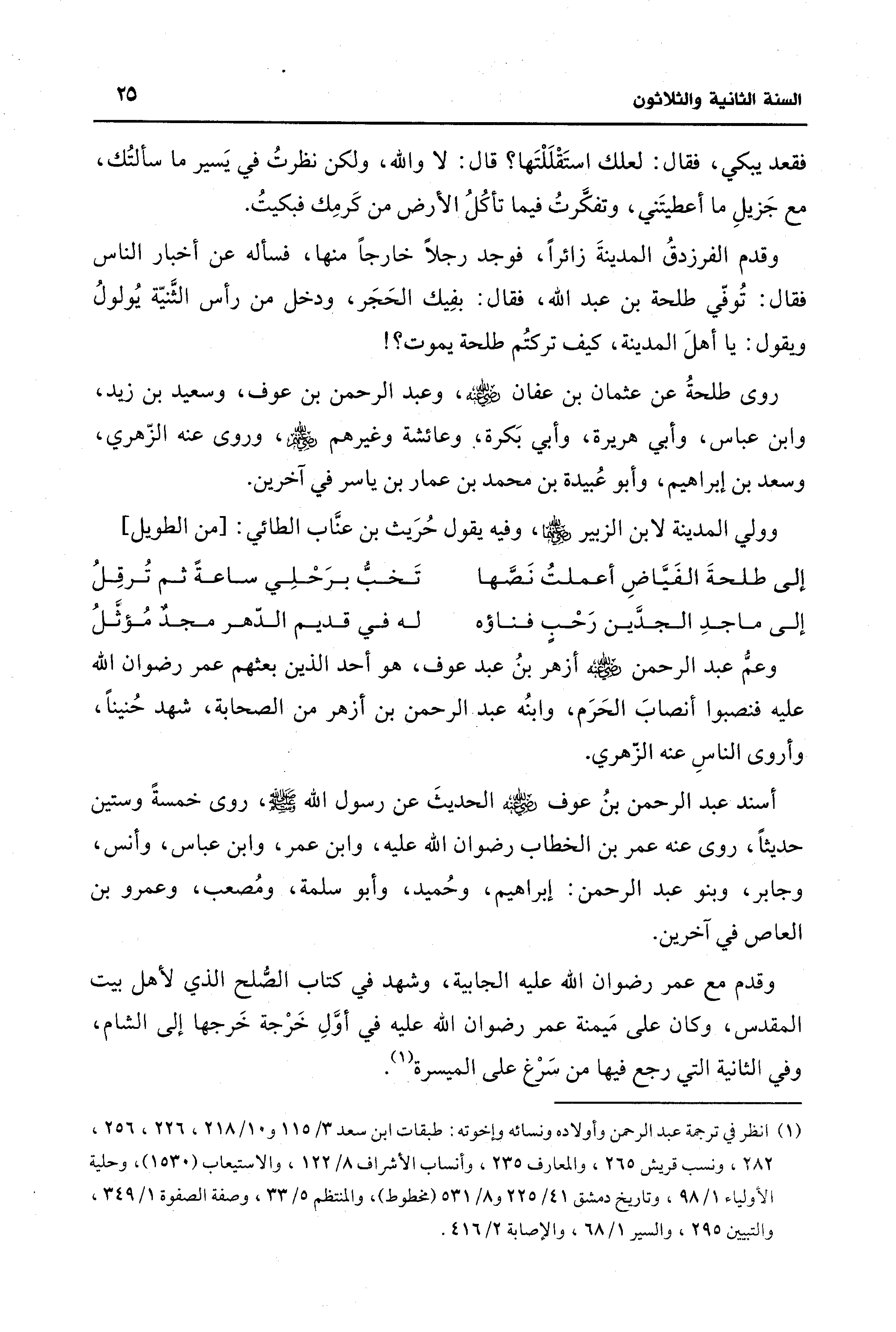 (¬1) انظر في ترجمة عبد الرحمن وأولاده ونسائه وإخوته: طبقات ابن سعد 3/ 115 و 10/ 218، 226، 256، 382، ونسب قريش 265، والمعارف 235، وأنساب الأشراف 8/ 122، والاستيعاب (1530)، وحلية الأولياء 1/ 98، وتاريخ دمشق 41/ 225 و 8/ 531 (مخطوط)، والمنتظم 5/ 33، وصفة الصفوة 1/ 349، والتبيين 295، والسير 1/ 68، والإصابة 2/ 416.
