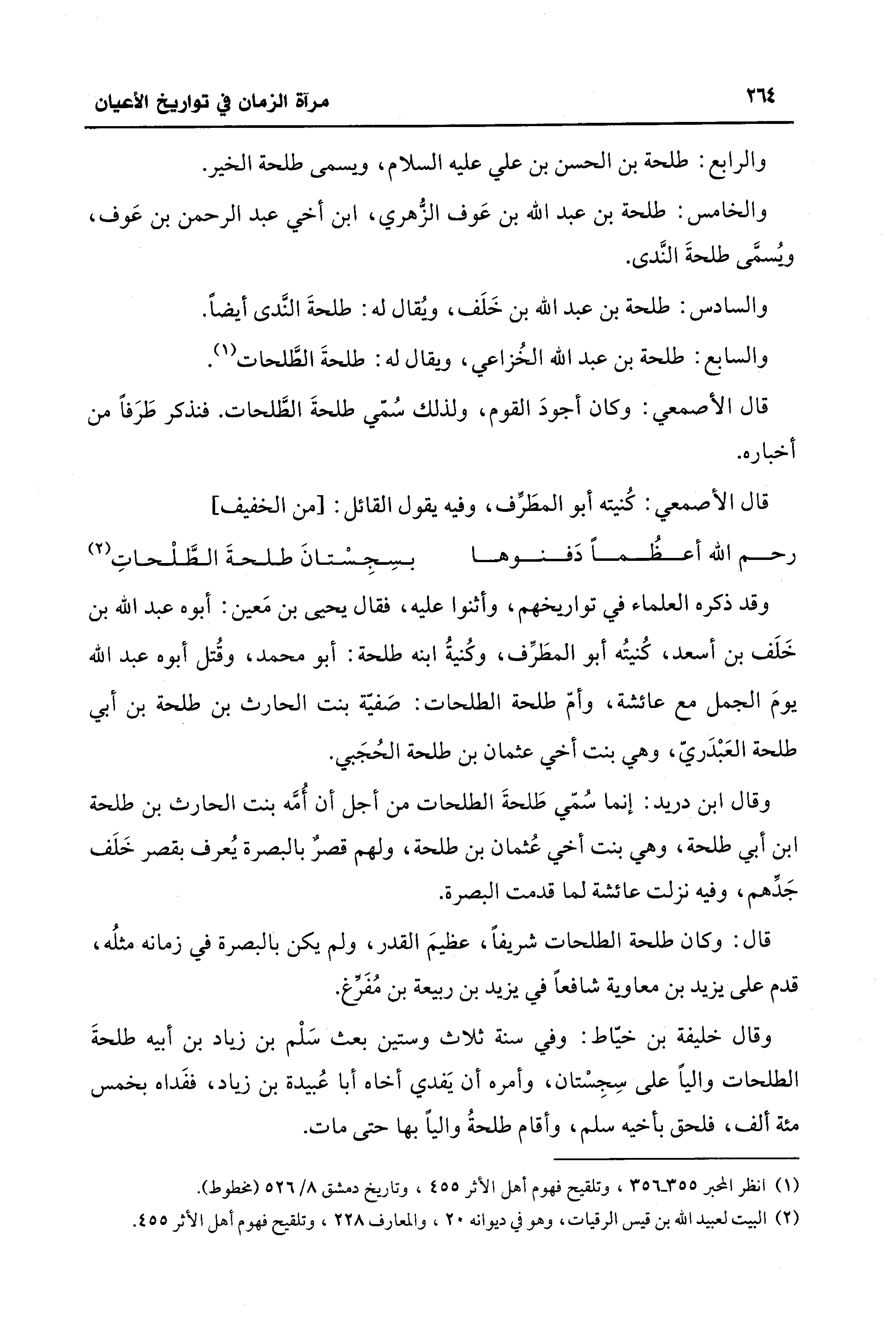 رحم الله أعظُمًا دَفنوها ... بسِجِسْتانَ طلحةَ الطَّلْحاتِ (¬2)