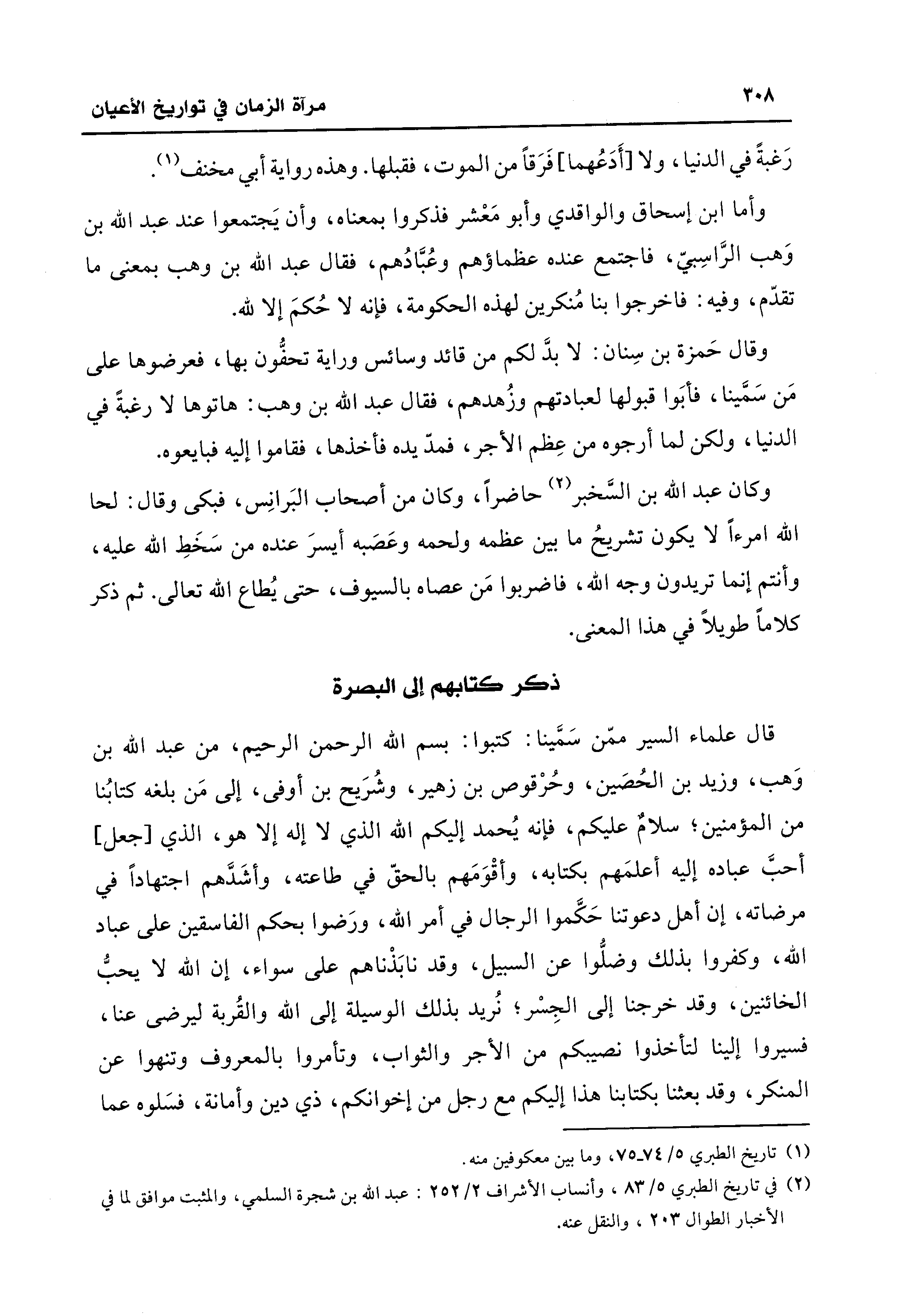 ذكر كتابهم إلى البصرة