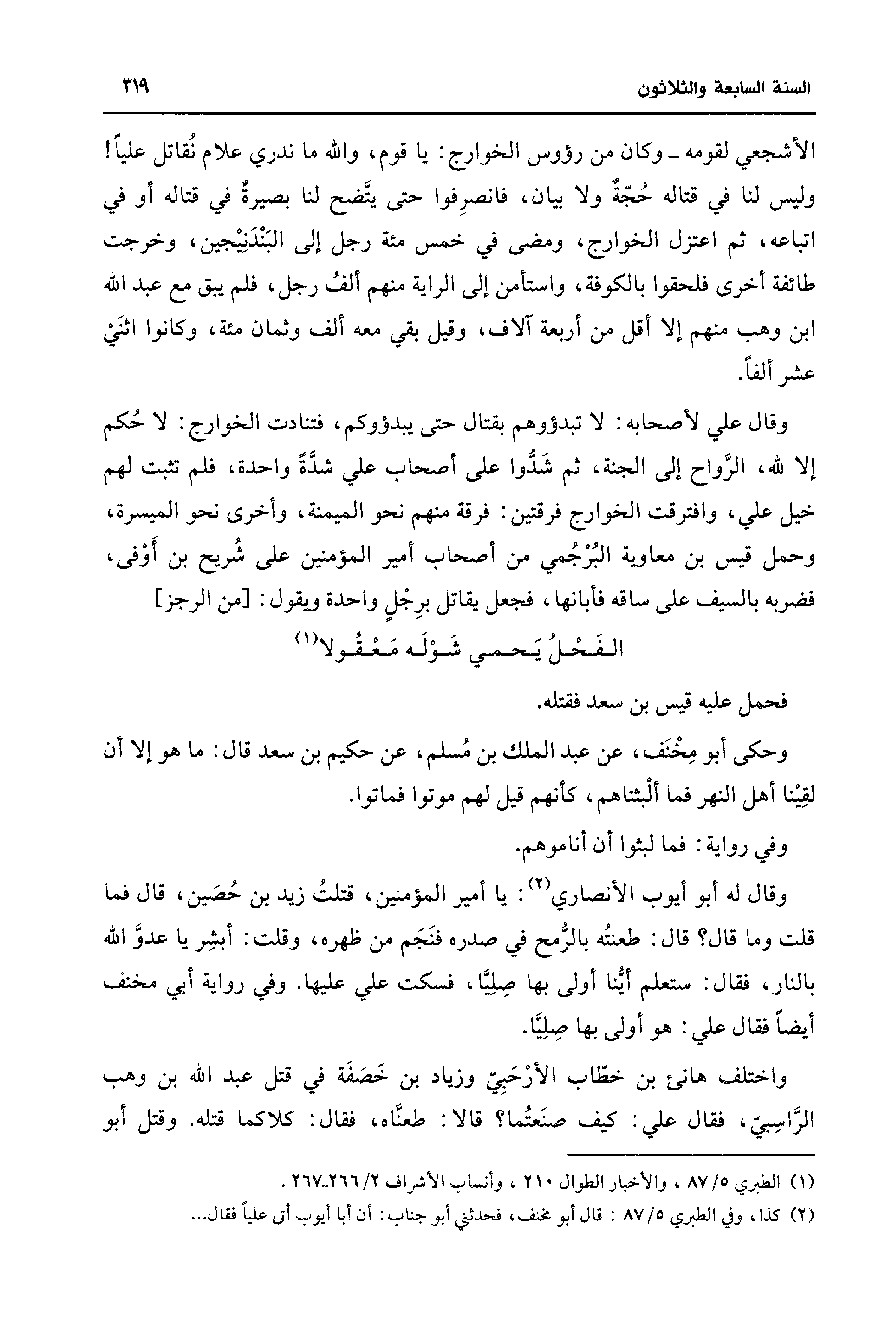 (¬1) الطبري 5/ 87، والأخبار الطوال 210، وأنساب الأشراف 2/ 266 - 267.