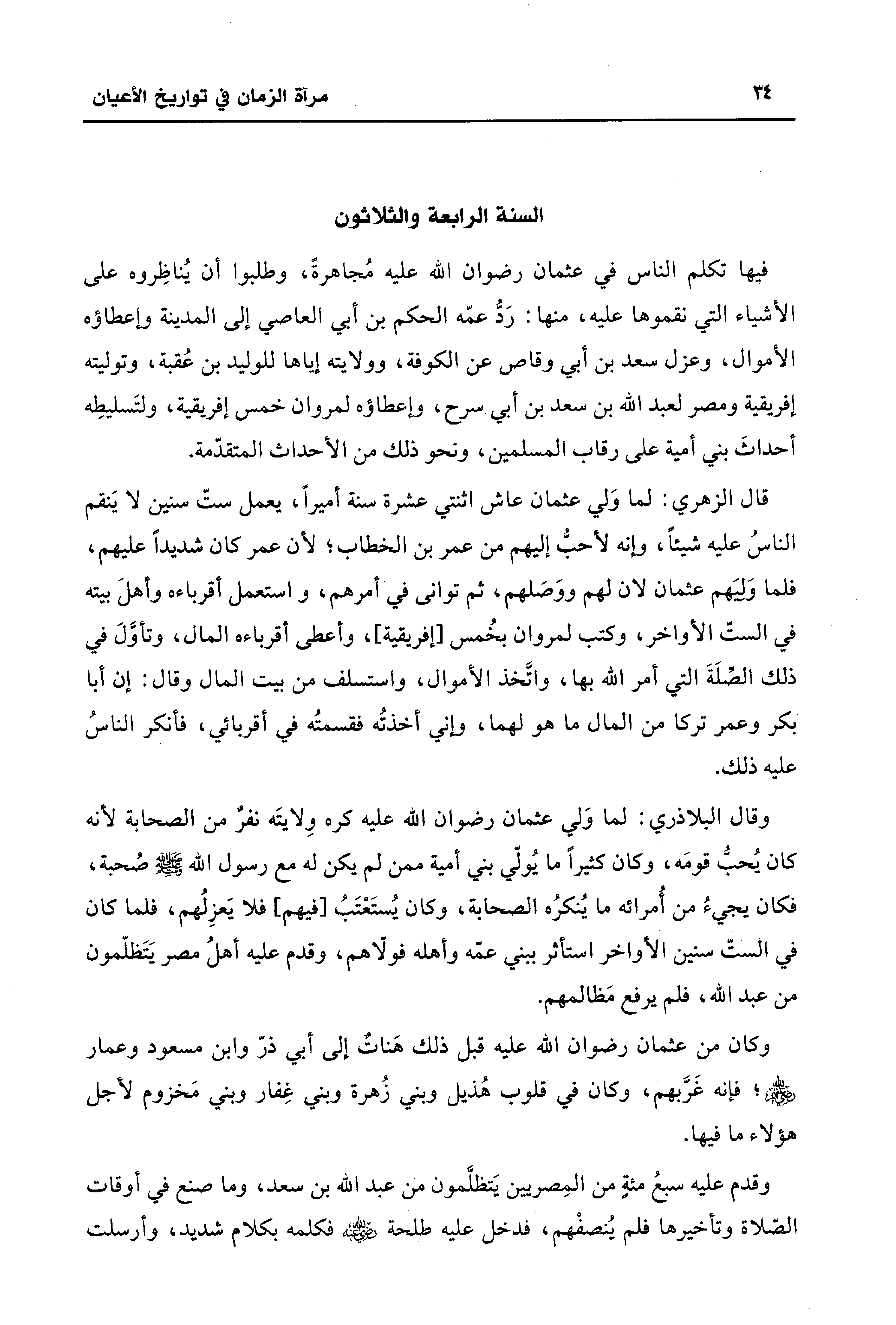 فيها تكلم النَّاس في عثمان رضوان الله عليه مُجاهرةً، وطلبوا أن يُناظِروه على الأشياء التي نقموها عليه، منها: رَدُّ عمّه الحكم بن أبي العاصي إلى المدينة وإعطاؤه الأموال، وعزل سعد بن أبي وقاص عن الكوفة، وولايته إياها للوليد بن عُقبة، وتوليته إفريقية ومصر لعبد الله بن سعد بن أبي سرح، وإعطاؤه لمروان خمس إفريقية، ولتَسليطِه أحداثَ بني أميَّة على رقاب المسلمين، ونحو ذلك من الأحداث المتقدّمة.