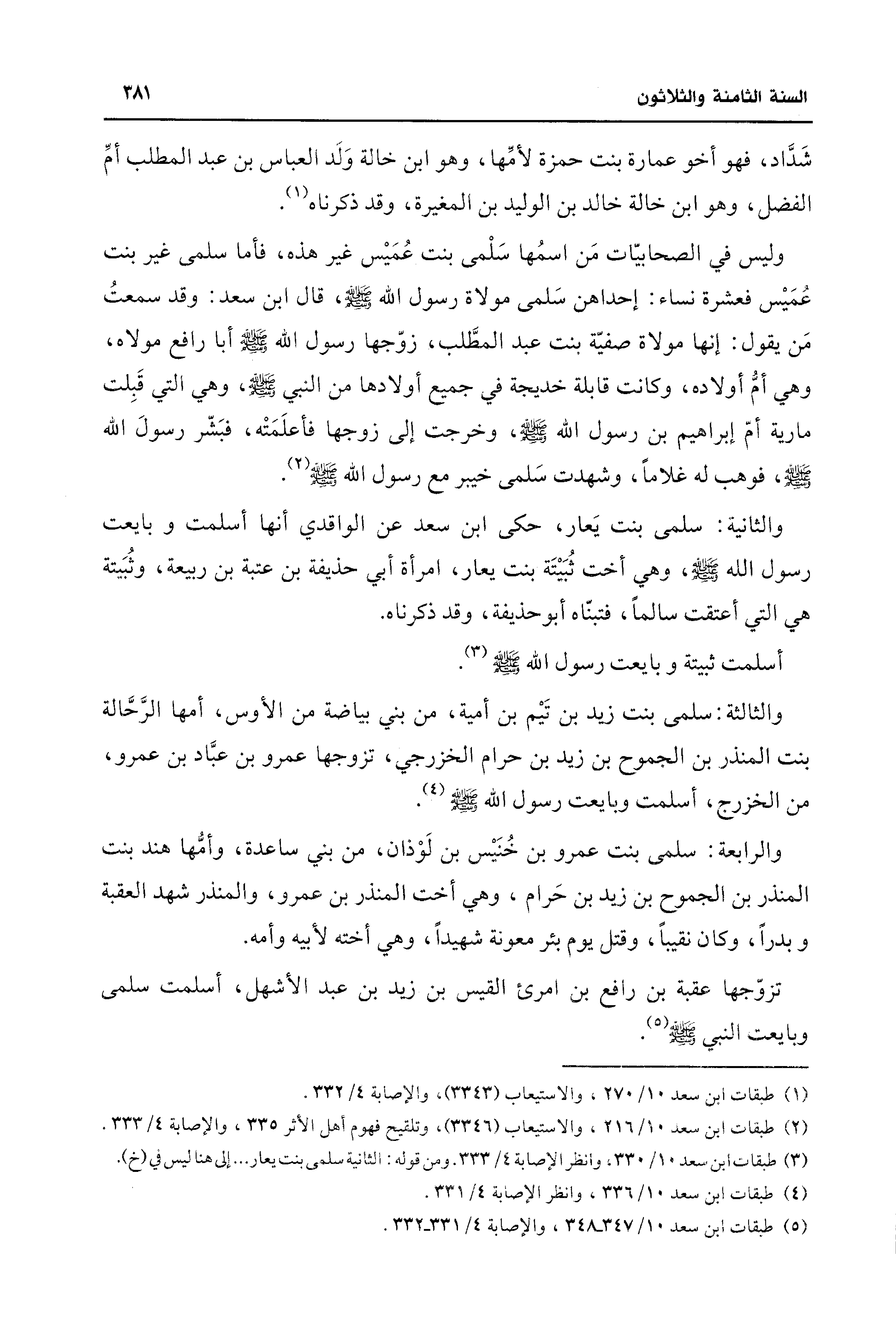 (¬3) طبقات ابن سعد 10/ 330، وانظر الإصابة 4/ 333. ومن قوله: الثانية سلمى بنت يعار ... إلى هنا ليس في (خ).