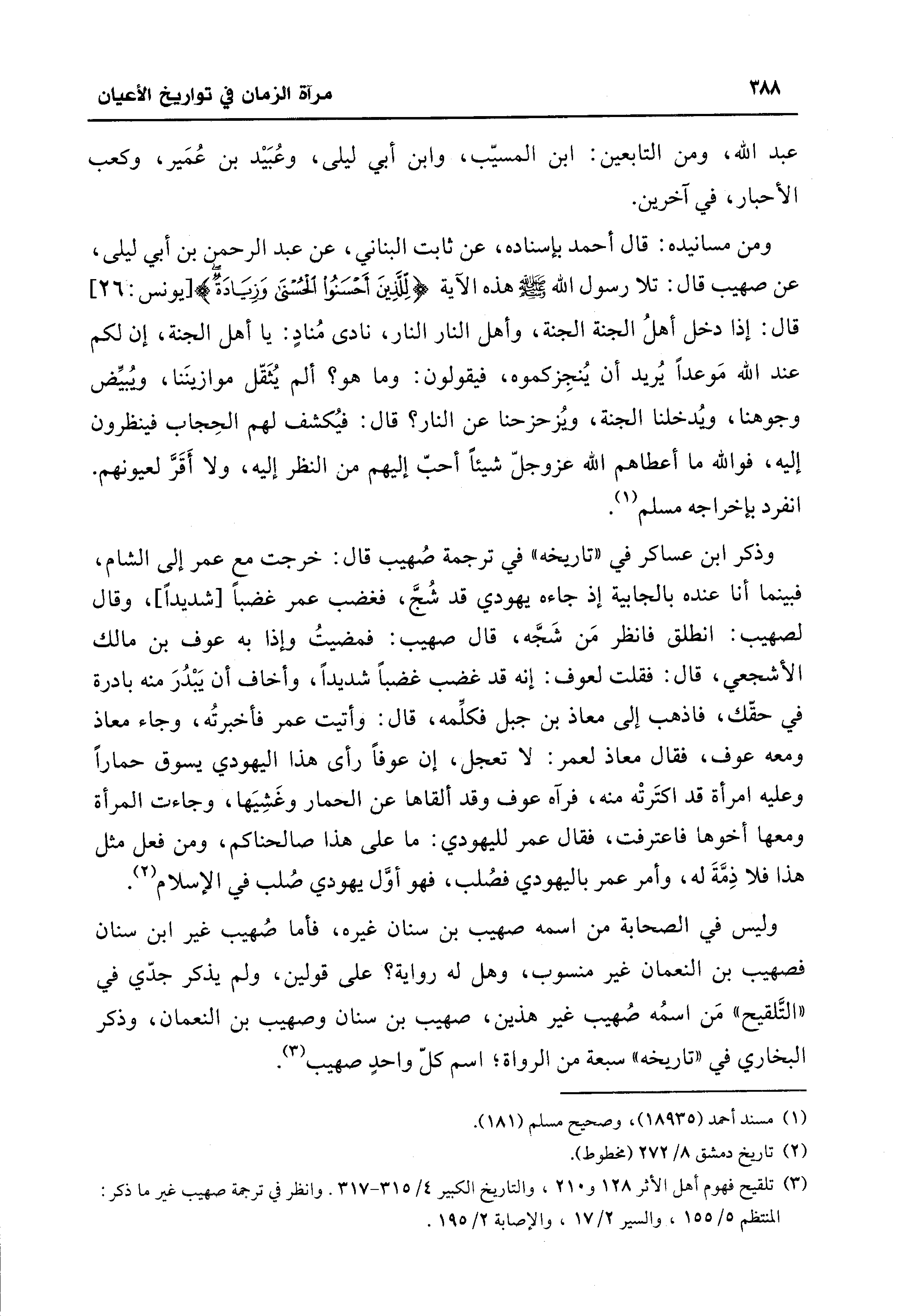 (¬3) تلقيح فهوم أهل الأثر 128 و 210، والتاريخ الكبير 4/ 315 - 317. وانظر في ترجمة صهيب غير ما ذكر: المنتظم 5/ 155، والسير 2/ 17، والإصابة 2/ 195.