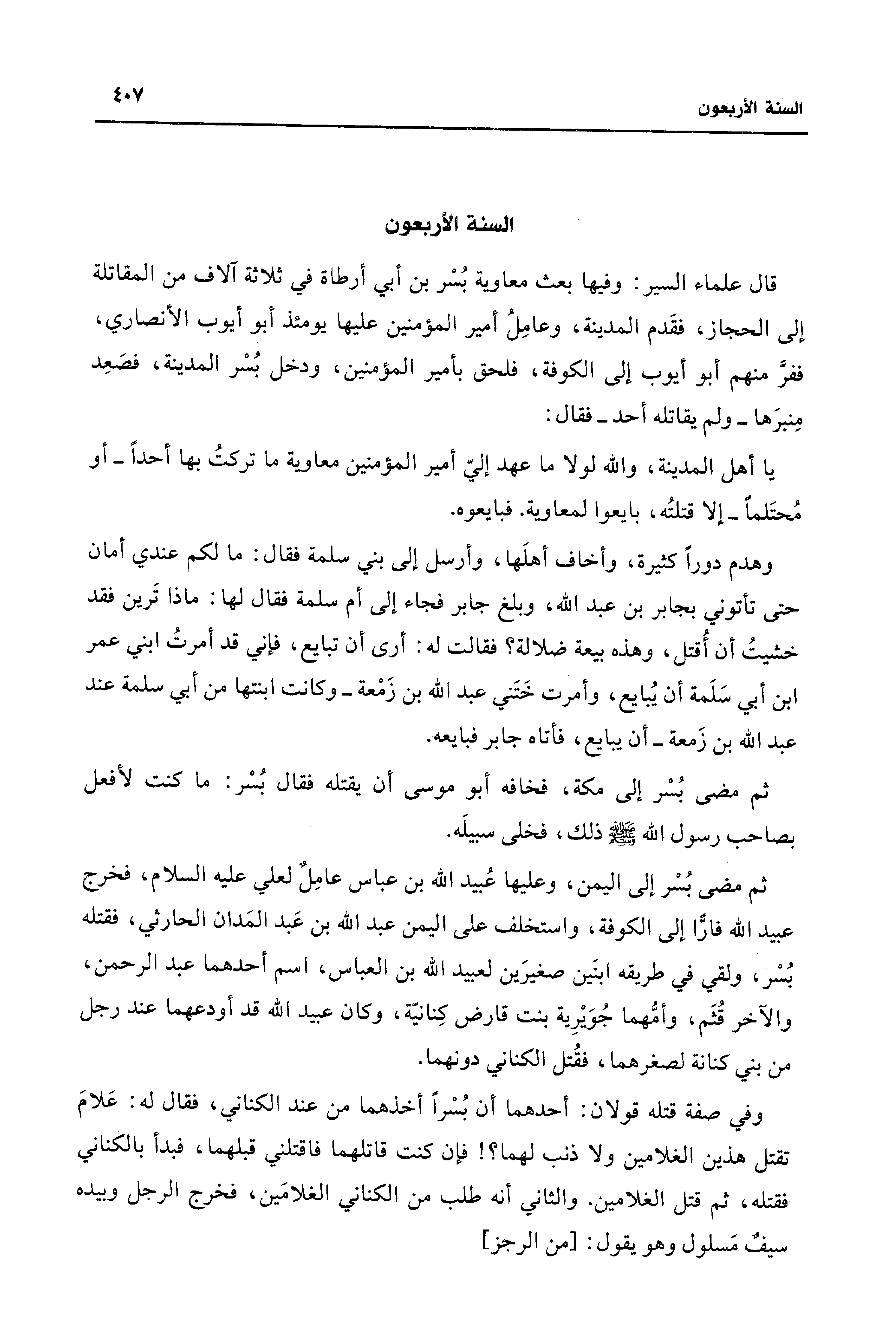 قال علماء السير: وفيها بعث معاوية بُسْر بن أبي أرطاة في ثلاثة آلاف من المقاتلة إلى الحجاز، فقَدم المدينة، وعامِلُ أمير المؤمنين عليها يومئذ أبو أيوب الأنصاري، ففرَّ منهم أبو أيوب إلى الكوفة، فلحق بأمير المؤمنين، ودخل بُسْر المدينة، فصعد مِنبرَها - ولم يقاتله أحد - فقال: