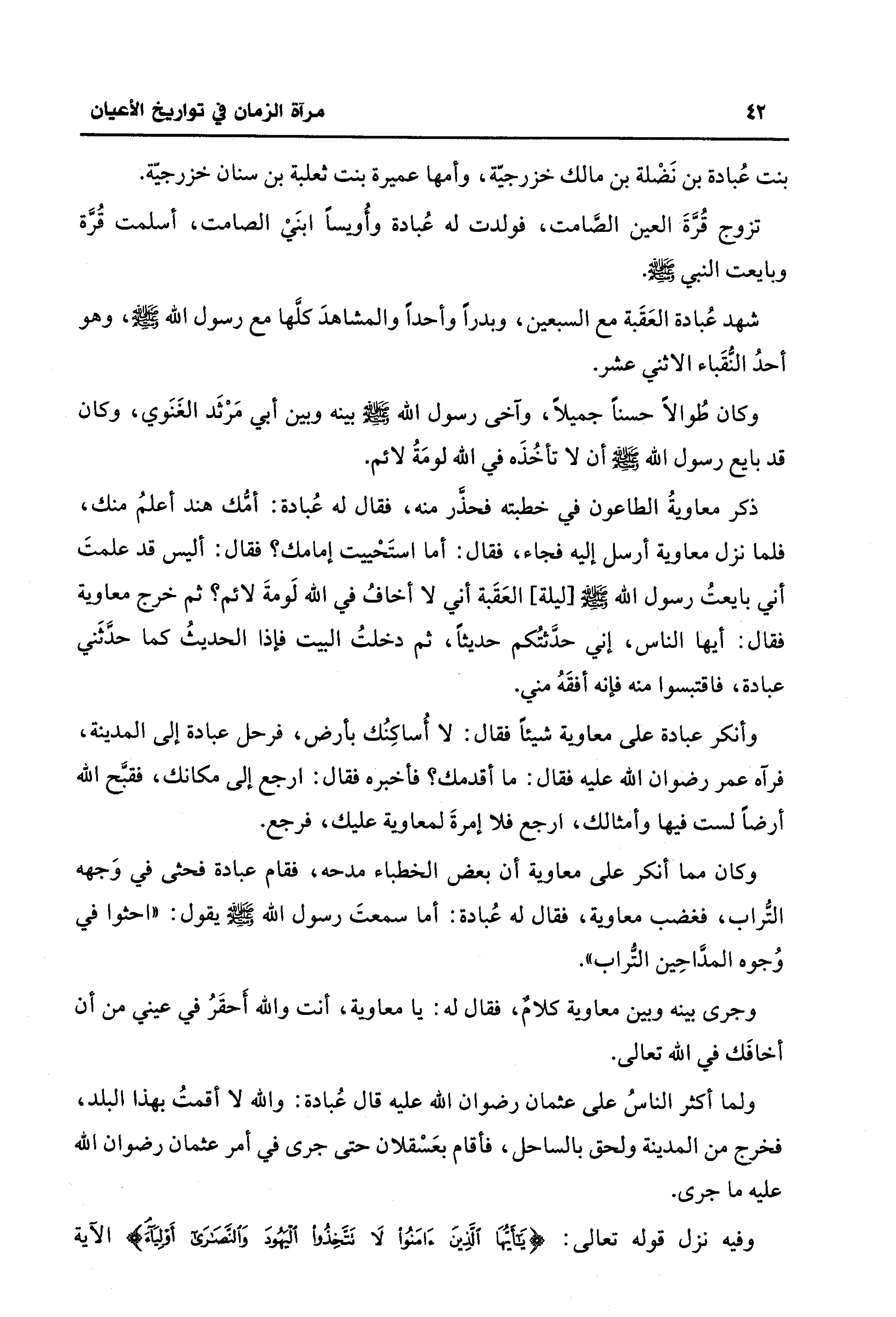 فلما نزل معاوية أرسل إليه فجاء، فقال: أما استَحْييت إمامك؟ فقال: أليس قد علمتَ أني بايعتُ رسول الله - صلى الله عليه وسلم -[ليلة] العَقَبة أني لا أخافُ في الله لَومةَ لائم؟ ثم خرج معاوية فقال: أيها النَّاس، إنِّي حدَّثتُكم حديثًا، ثم دخلتُ البيت فإذا الحديثُ كما حدثَني عبادة، فاقتبسوا منه فإنَّه أفقَهُ مني.