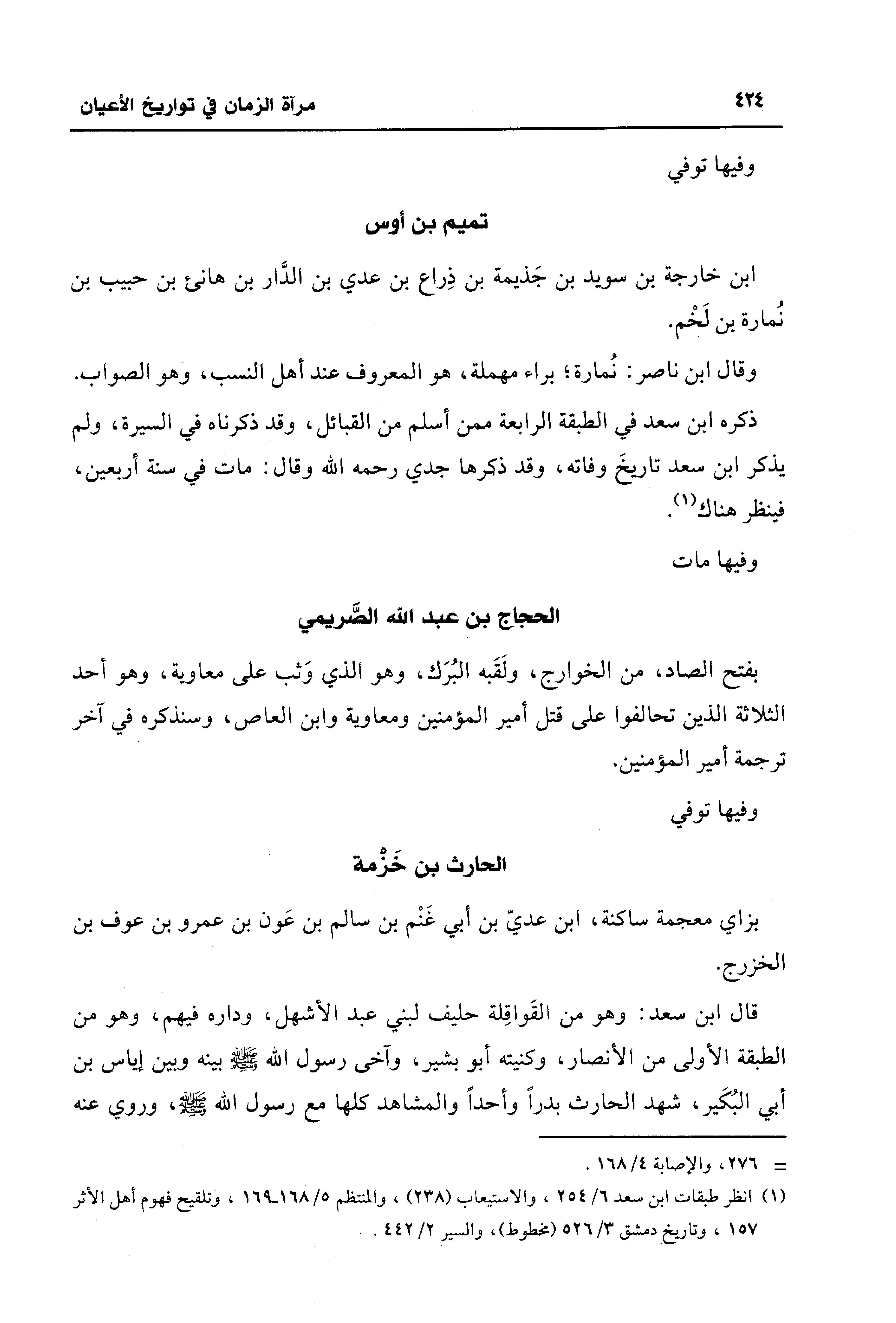 (¬1) انظر طبقات ابن سعد 6/ 254، والاستيعاب (238)، والمنتظم 5/ 168 - 169، وتلقيح فهوم أهل الأثر 157، وتاريخ دمشق 3/ 526 (مخطوط)، والسير 2/ 442.