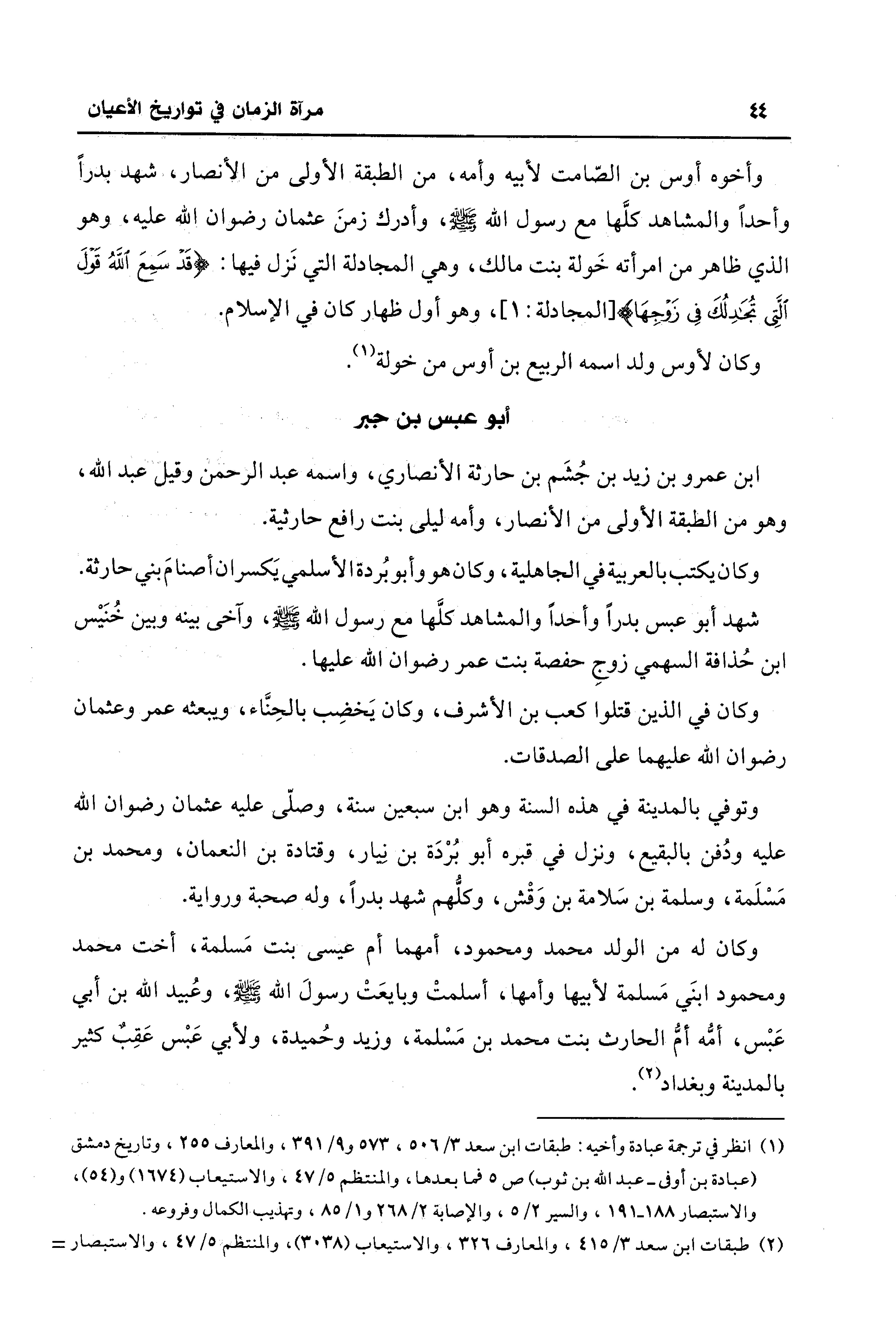 (¬1) انظر في ترجمة عبادة وأخيه: طبقات ابن سعد 3/ 506، 573 و 9/ 391، والمعارف 255، وتاريخ دمشق (عبادة بن أوفى- عبد الله بن ثوب) ص 5 فما بعدها، والمنتظم 5/ 47، والاستيعاب (1674) و (54)، والاستبصار 188 - 191، والسير 2/ 5، والإصابة 2/ 268 و 1/ 85، وتهذيب الكمال وفروعه.