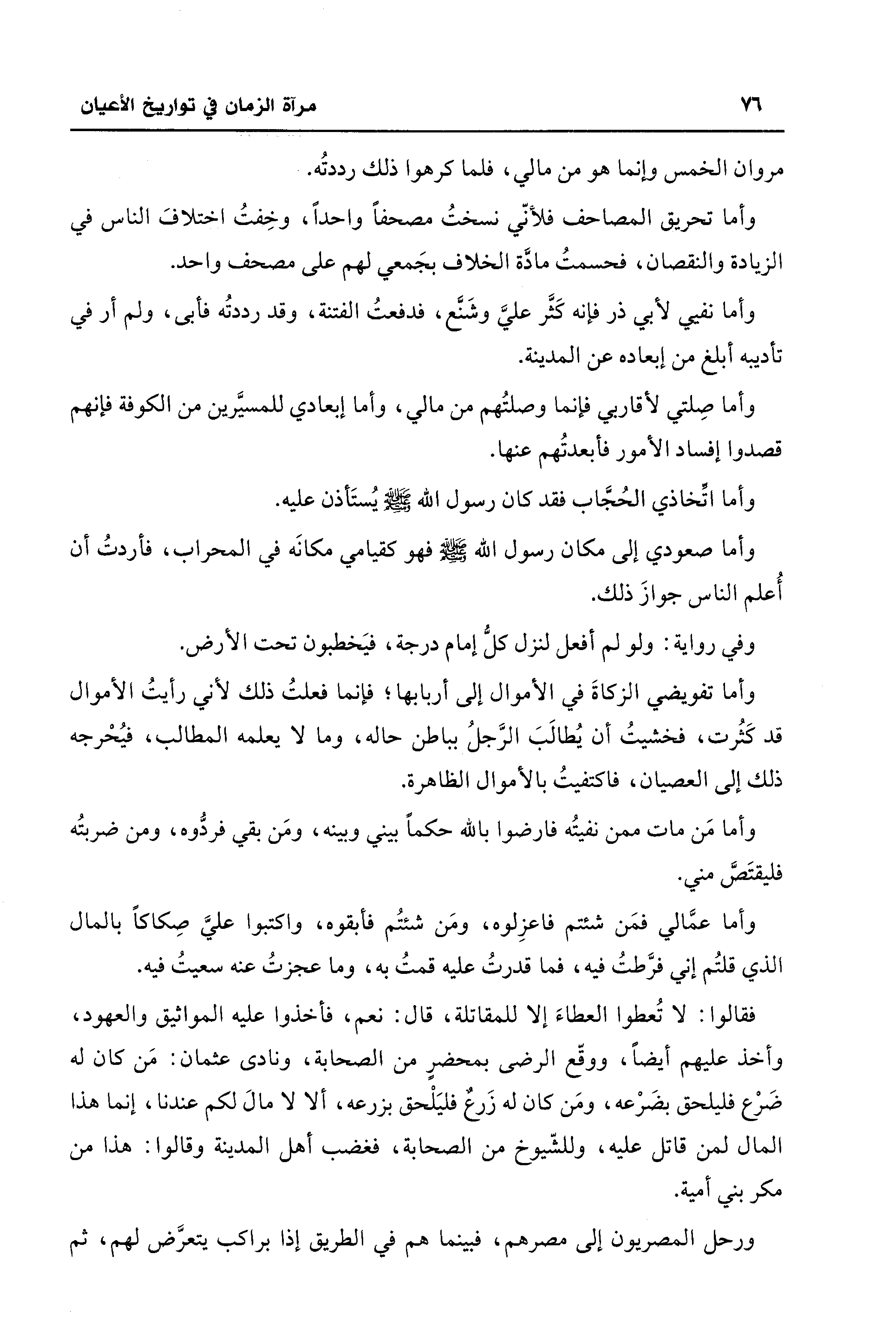 وأما صِلتي لأقاربي فإنما وصلتُهم من مالي، وأما إبعادي للمسيَّرين من الكوفة فإنهم قصدوا إفساد الأمور فأبعدتُهم عنها.