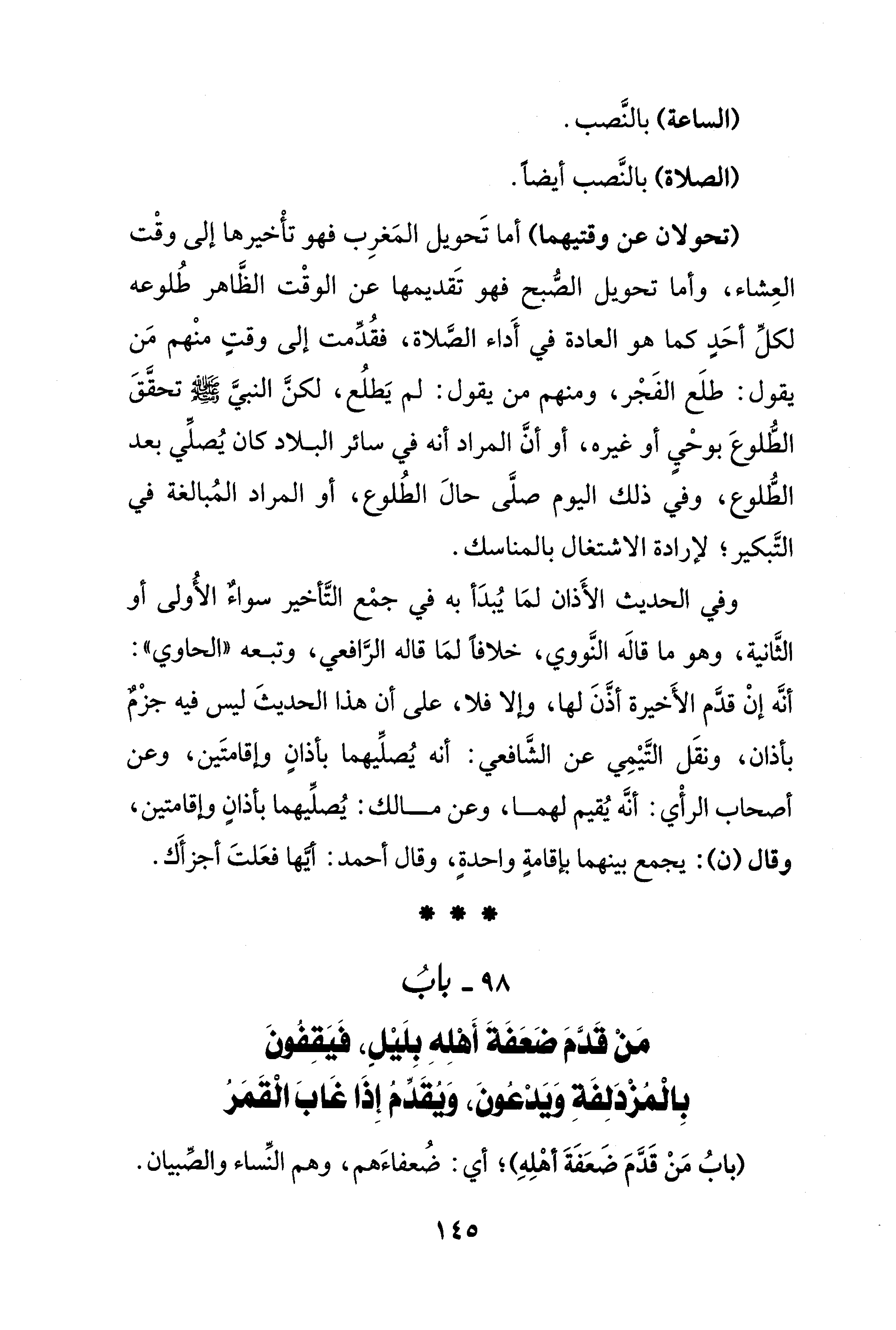 (تحولان عن وقتيهما) أنها تَحويل المَغرِب فهو تأْخيرها إلى وقْت العِشاء، وأمّا تحويل الصُّبح فهو تَقديمها عن الوقْت الظَّاهر طُلوعه لكلِّ أحَدٍ كما هو العادة في أَداء الصَّلاة، فقُدِّمت إلى وقتٍ منْهم مَنْ يقول: طلَع الفَجْر، ومنهم من يقول: لم يَطلُع، لكنَّ النبيَّ - صلى الله عليه وسلم - تحقَّقَ الطُّلوعَ بوحْيٍ أو غيره، أو أنَّ المراد أنه في سائر البلاد كان يُصلِّي بعد الطُّلوع، وفي ذلك اليوم صلَّى حالَ الطُّلوع، أو المراد المُبالغة في التَّبكير؛ لإرادة الاشتغال بالمناسك.