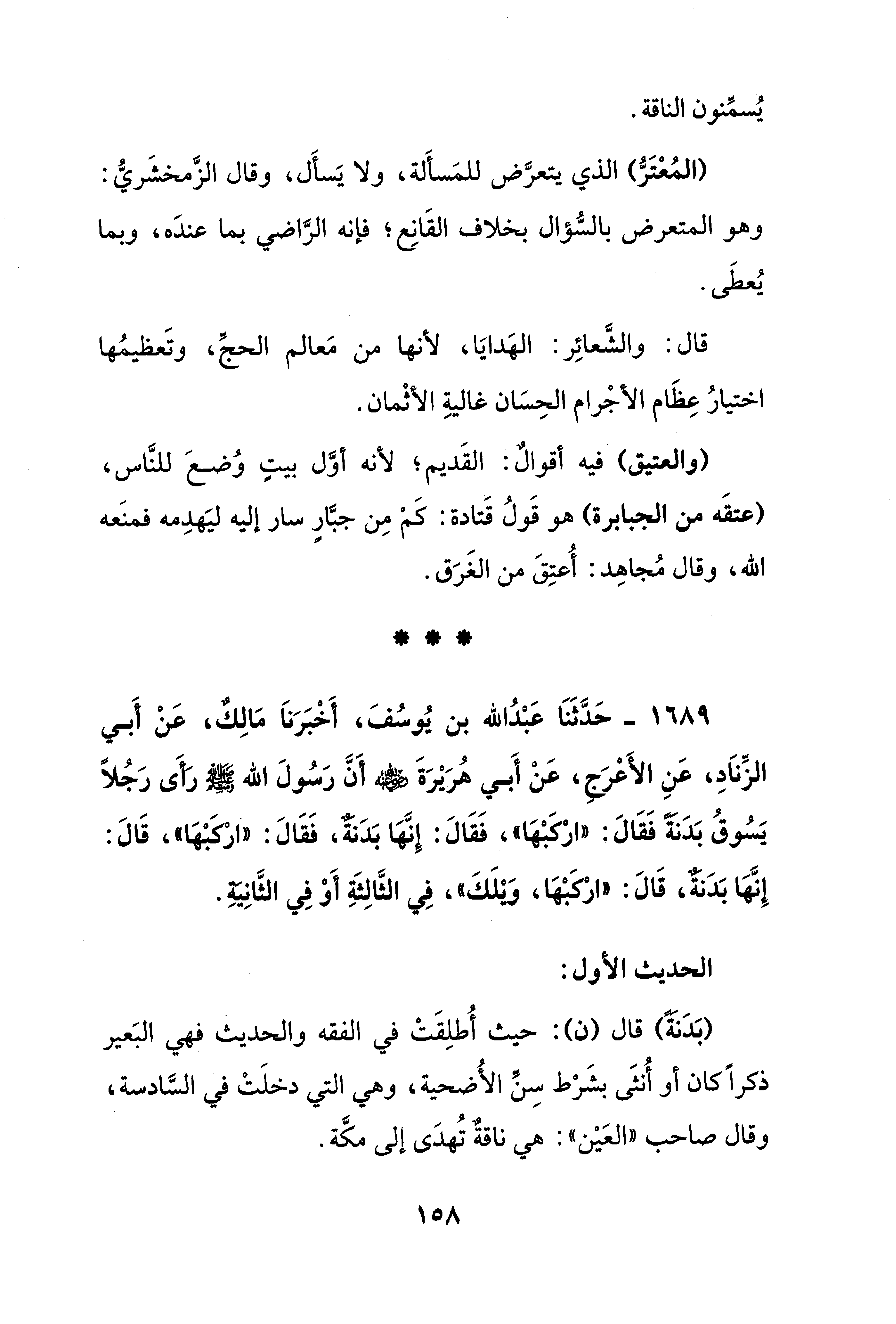 1689 - حَدَّثَنَا عَبْدُ الله بن يُوسُفَ، أَخْبَرَنَا مَالِكٌ، عَنْ أَبي الزِّنَادِ، عَنِ الأَعْرَج، عَنْ أَبي هُرَيْرَةَ - رضي الله عنه - أَنَّ رَسُولَ الله - صلى الله عليه وسلم - رَأَى رَجُلًا يَسُوقُ بَدَنَةً فَقَالَ: "ارْكَبْهَا"، فَقَالَ: إِنَّهَا بَدَنَةٌ، فَقَالَ: "ارْكَبْهَا"، قَالَ: إِنَّهَا بَدَنَةٌ، قَالَ: "ارْكَبْهَا، ويلَكَ"، فِي الثَّالِثَةِ أَوْ فِي الثَّانِيَةِ.