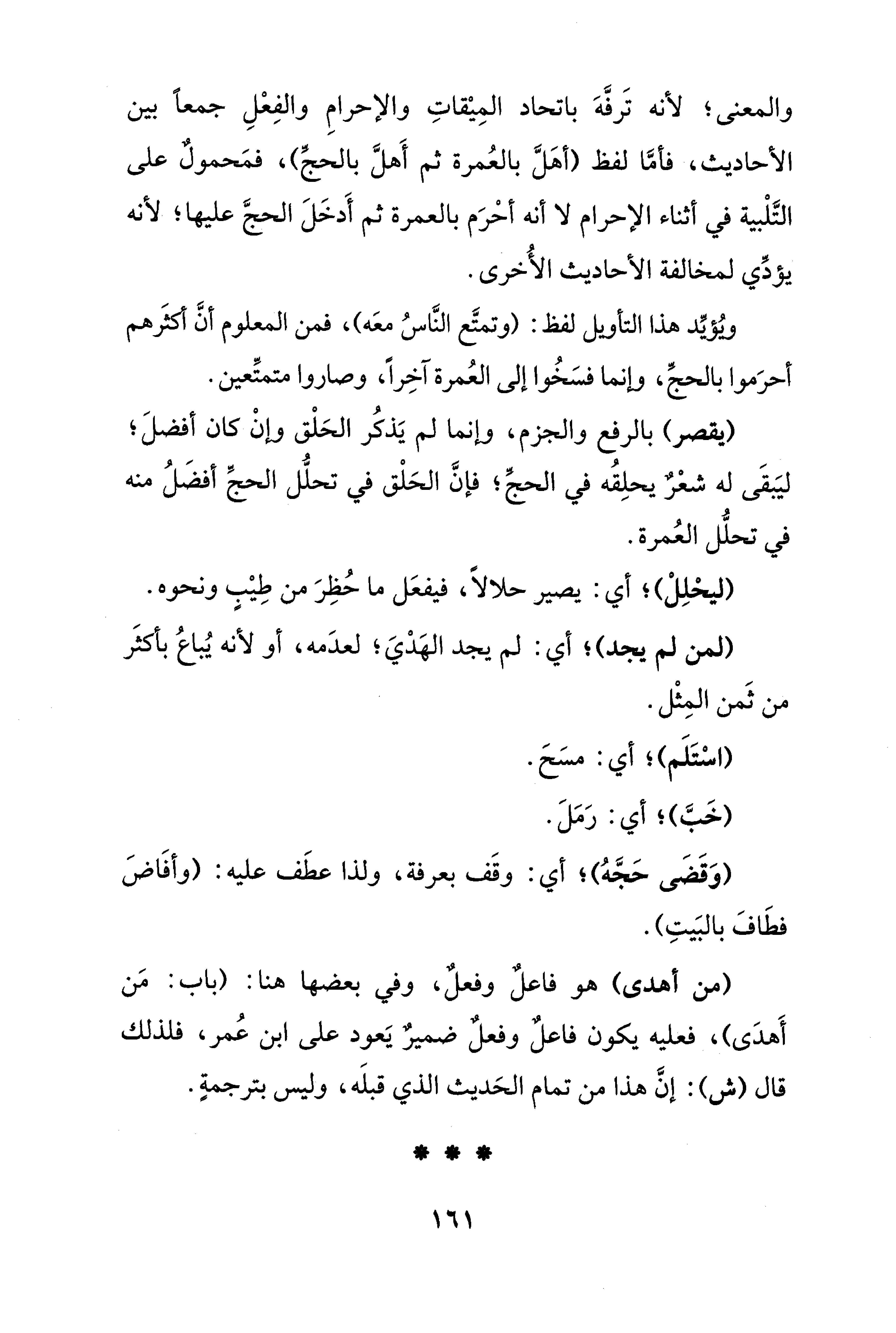 والمعنى؛ لأنه تَرفَّهَ باتحاد المِيْقاتِ والإحرامِ والفِعْلِ جمعًا بين الأحاديث، فأمَّا لفظ (أهَلَّ بالعُمرة ثمّ أَهلَّ بالحجِّ)، فمَحمولٌ على التَّلْبية في أثناء الإحرام لا أنه أحْرَم بالعمرة ثمّ أَدخَلَ الحجَّ عليها؛ لأنه يؤدِّي لمخالفة الأحاديث الأُخرى.