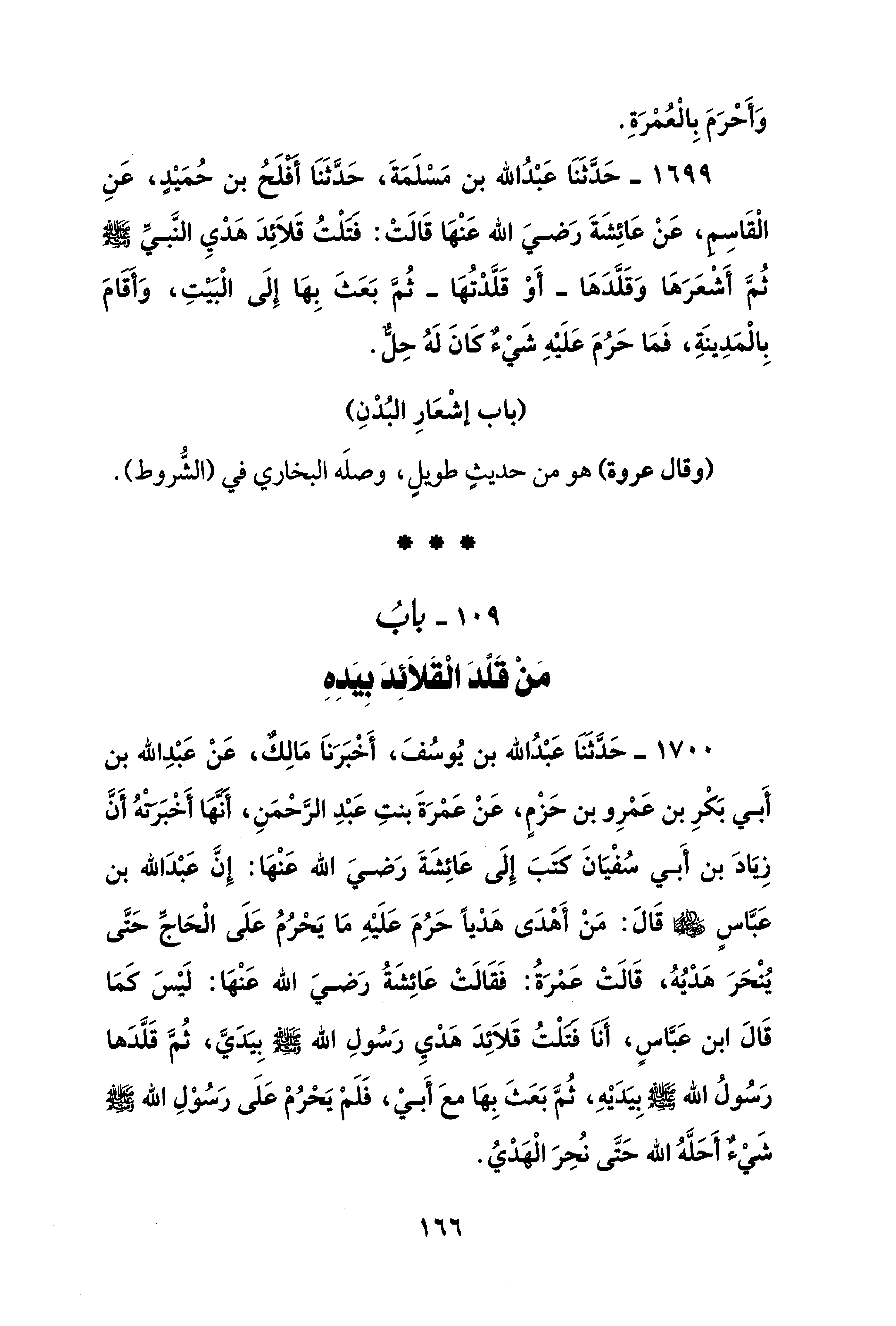 109 - بابُ مَنْ قَلَّدَ الْقَلَائِدَ بِيَدِهِ