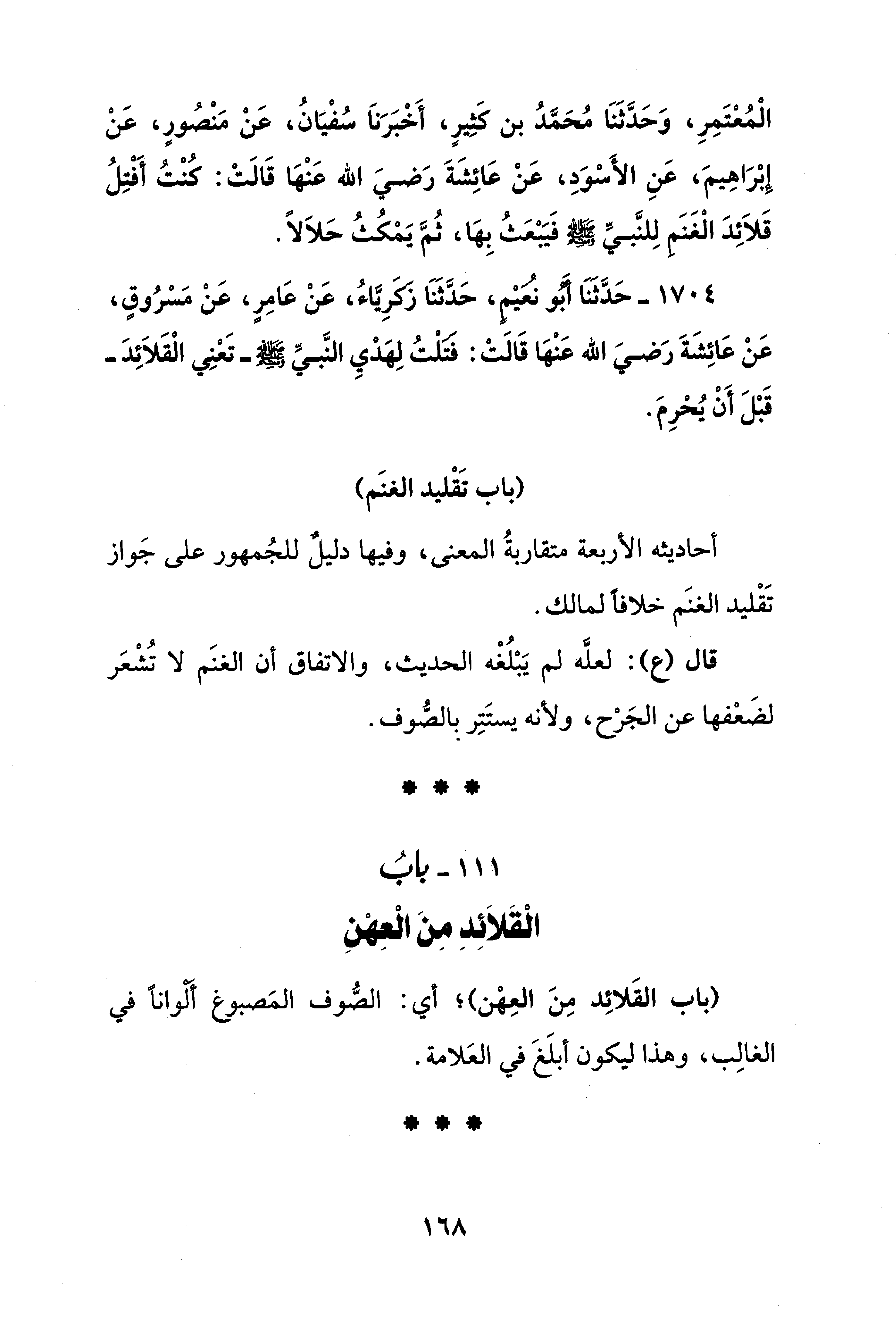 111 - بابُ الْقَلَائِدِ مِنَ الْعِهْنِ