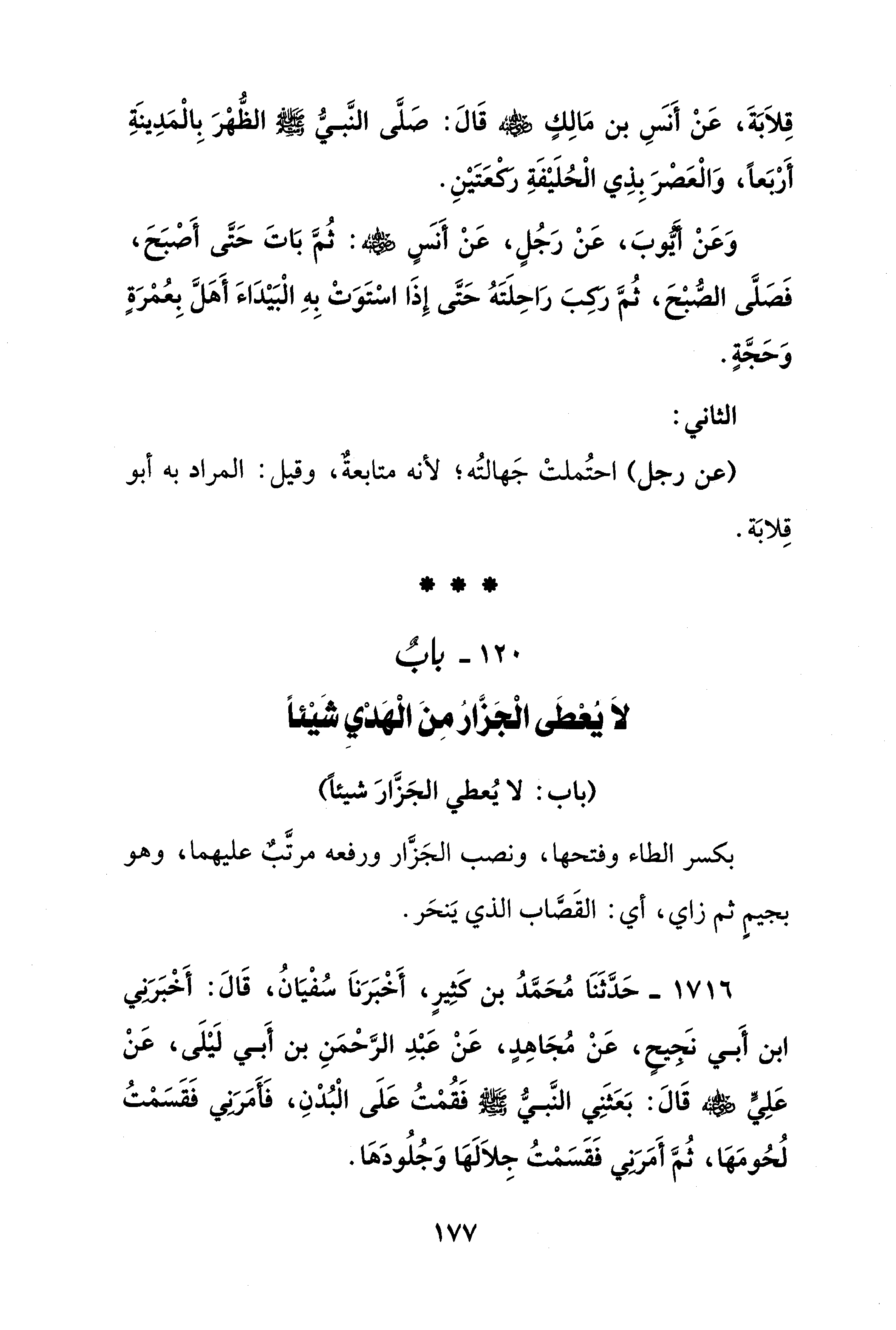 120 - بابٌ لَا يُعْطَى الْجَزَّارُ مِنَ الْهَدْيِ شَيْئًا