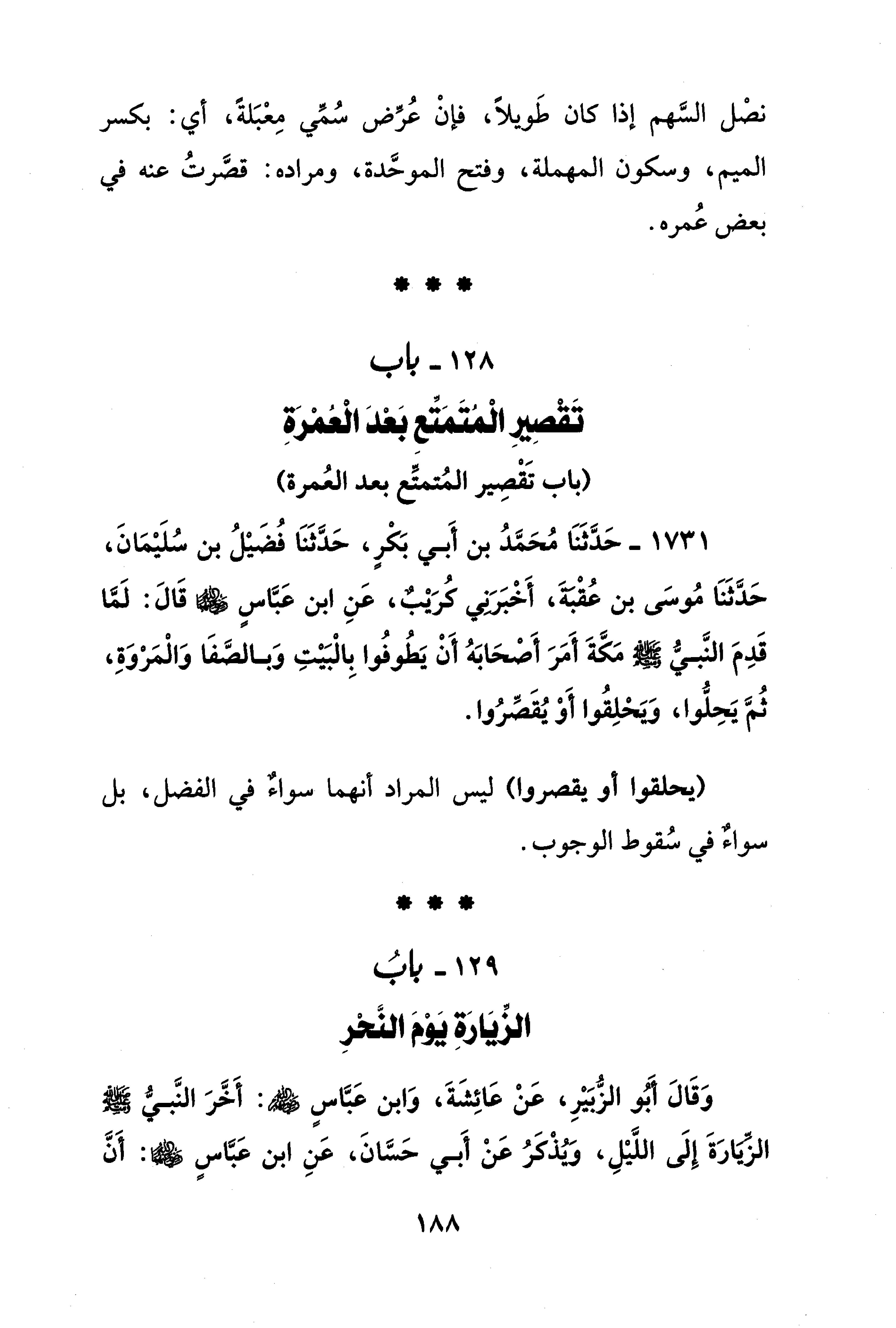 129 - بابُ الزِّيَارَةِ يَوْمَ النَّحْرِ