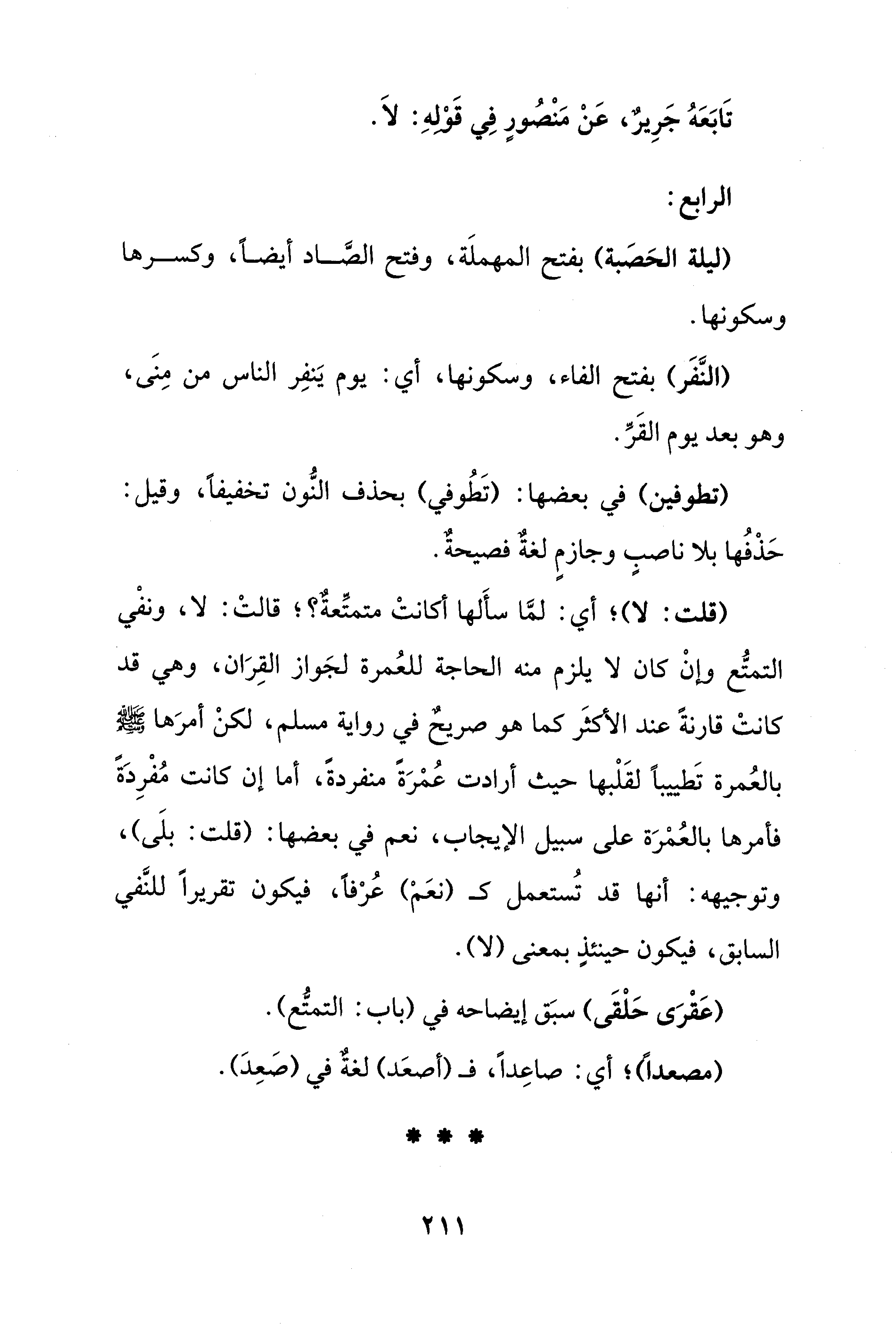 تَابَعَهُ جَرِيرٌ، عَنْ مَنْصُورٍ فِي قَوْلهِ: لاَ.