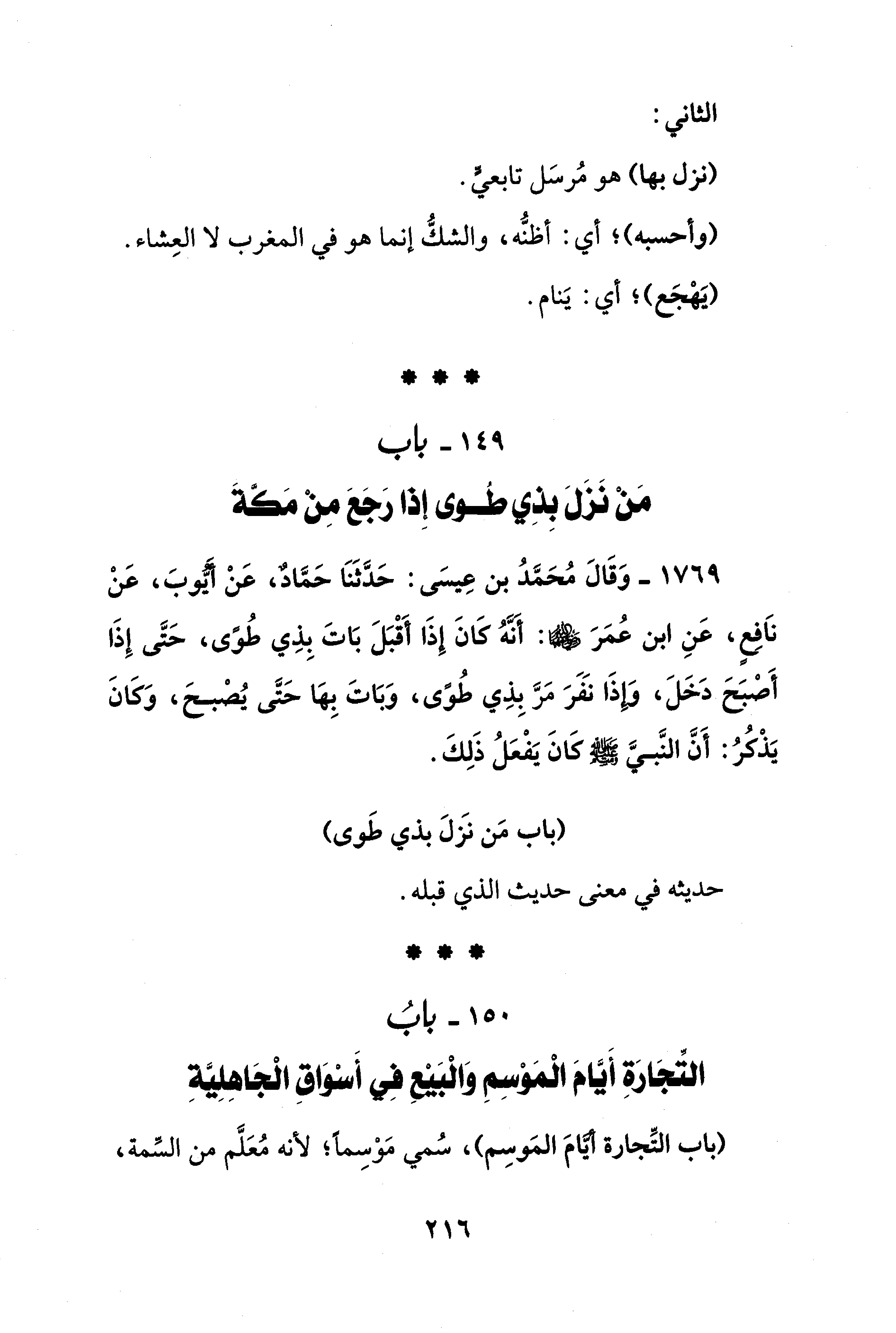 149 - باب مَنْ نَزَلَ بِذِي طُوى إِذا رَجَعَ مِنْ مَكة