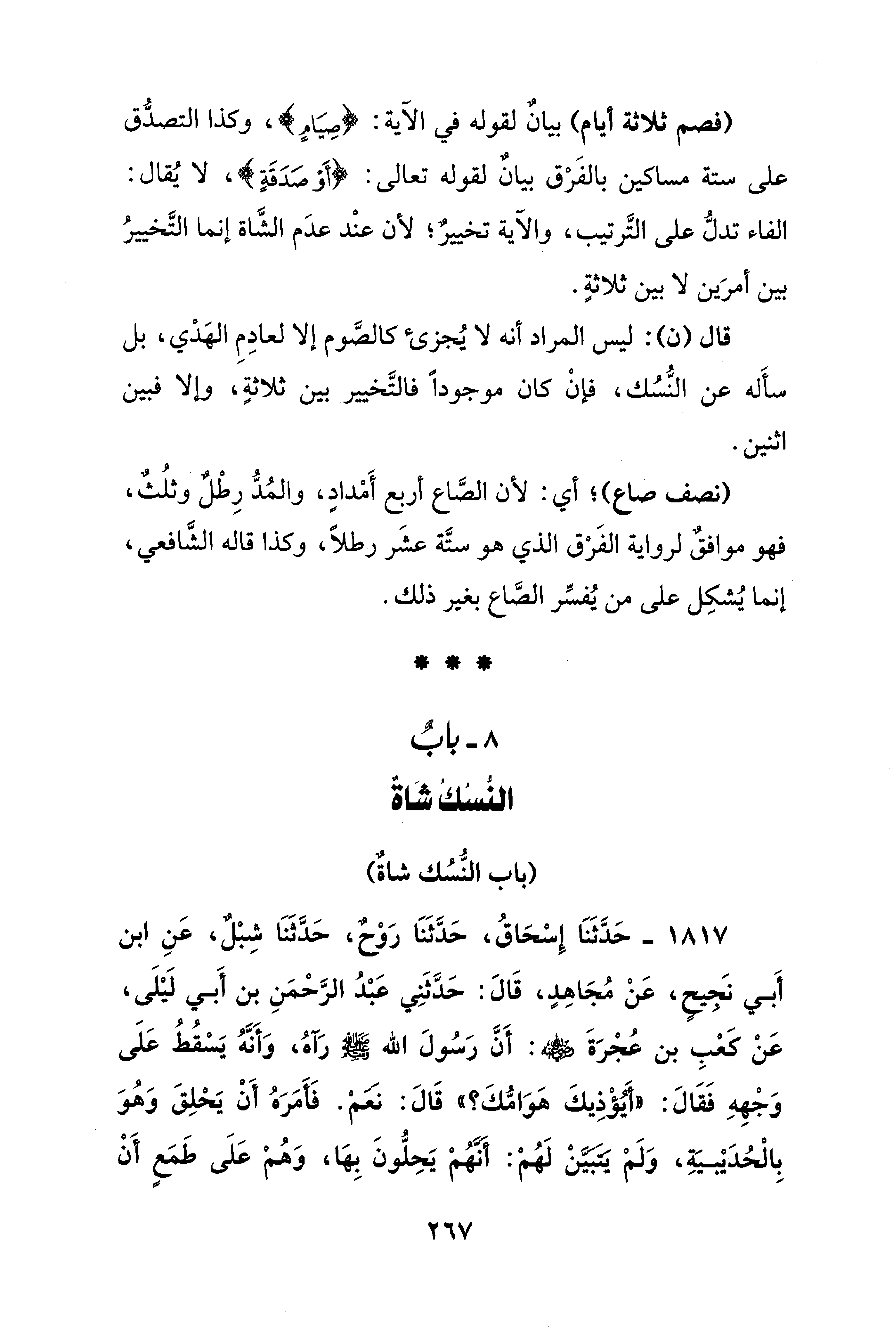 8 - بابٌ النُّسُكُ شَاةٌ