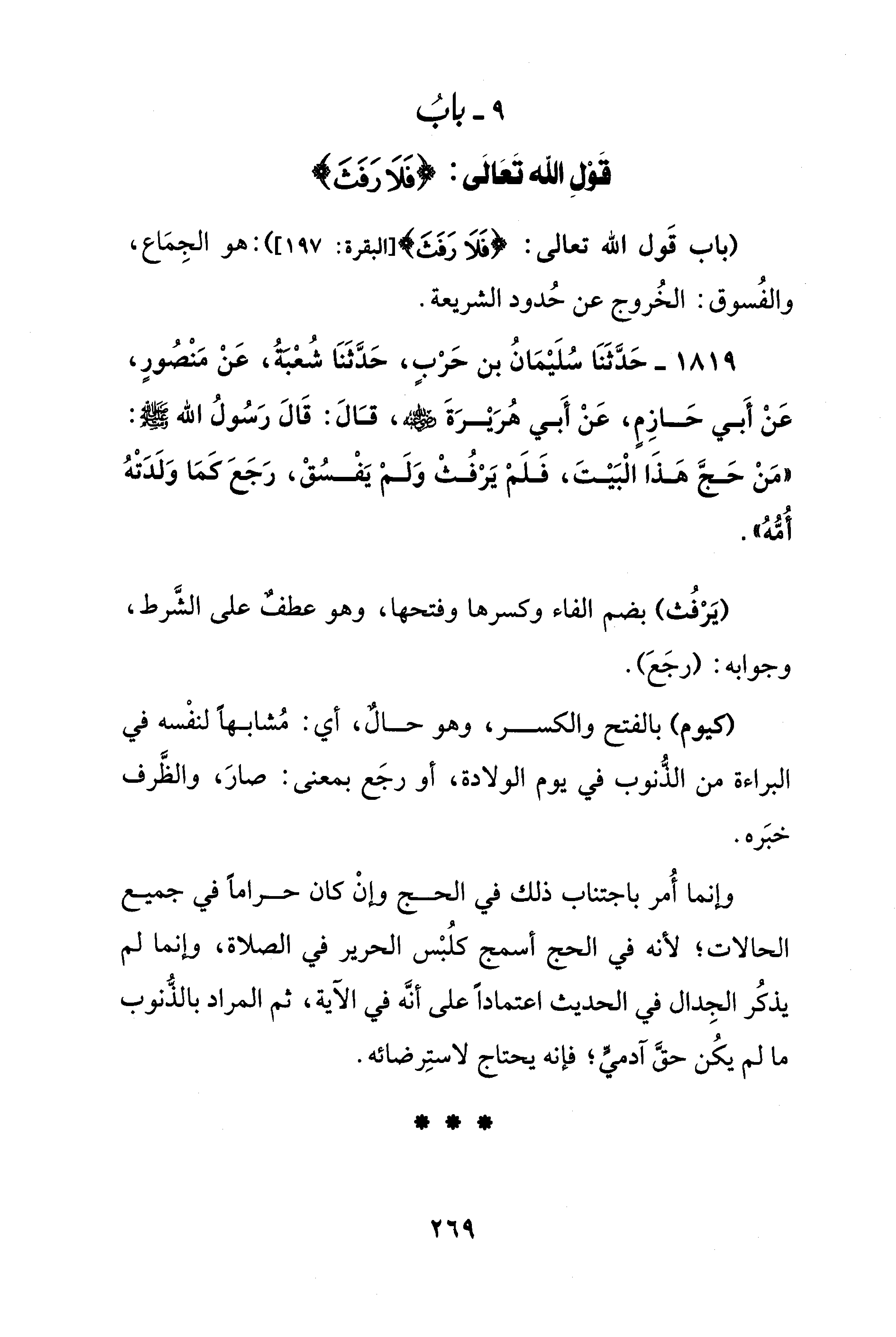 9 - بابُ قَوْلِ الله تَعَالَى: {فَلَا رَفَثَ}
