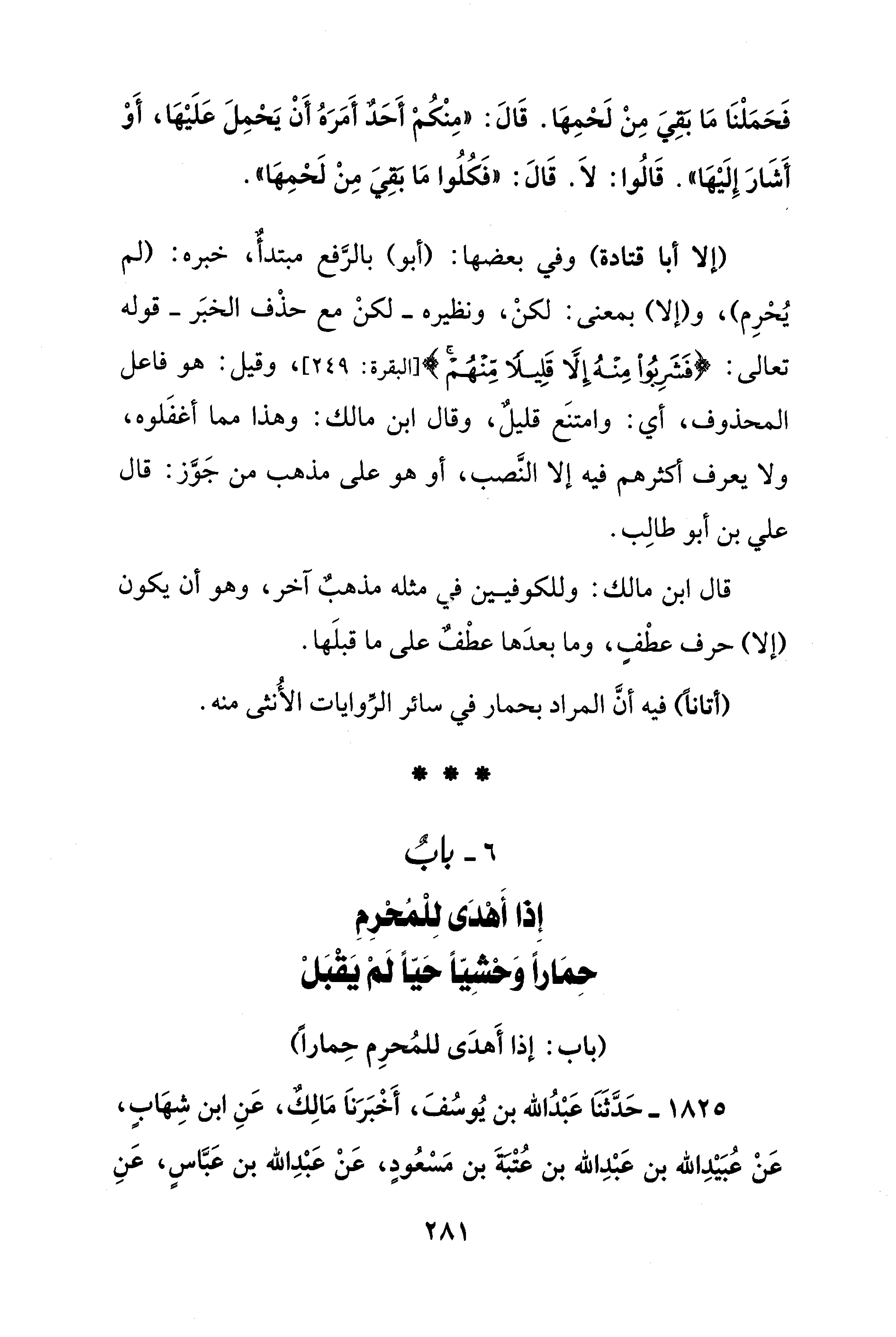 1825 - حَدَّثَنَا عَبْدُ الله بن يُوسُفَ، أَخْبَرَناَ مَالِك، عَنِ ابن شهَابٍ، عَنْ عُبَيْدِ الله بن عَبْدِ الله بن عُتْبةَ بن مَسْعُودٍ، عَنْ عَبْدِ الله بن عَبَّاسٍ، عَنِ