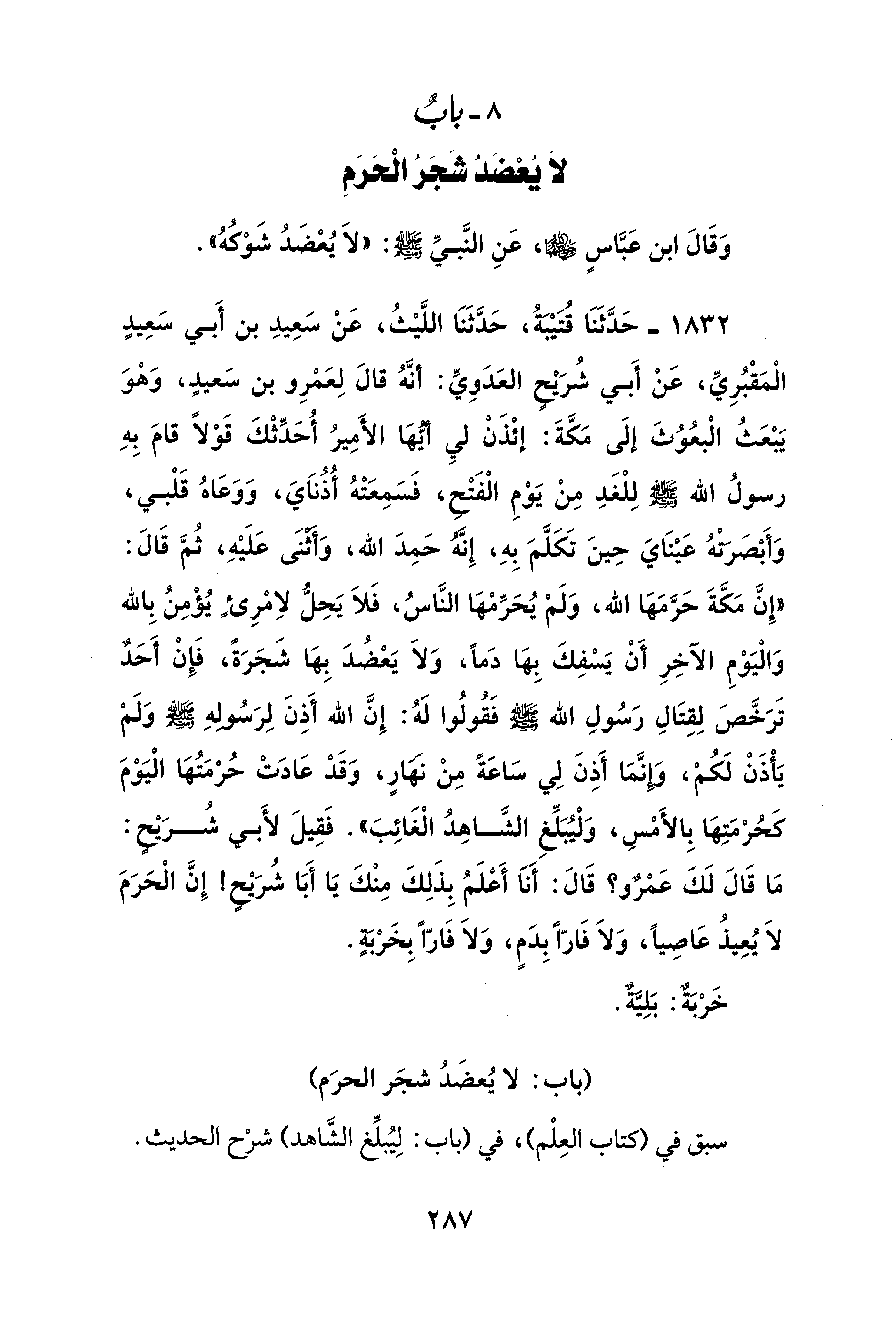 8 - بابٌ لاَ يعْضَدُ شَجَرُ الْحرَمِ
