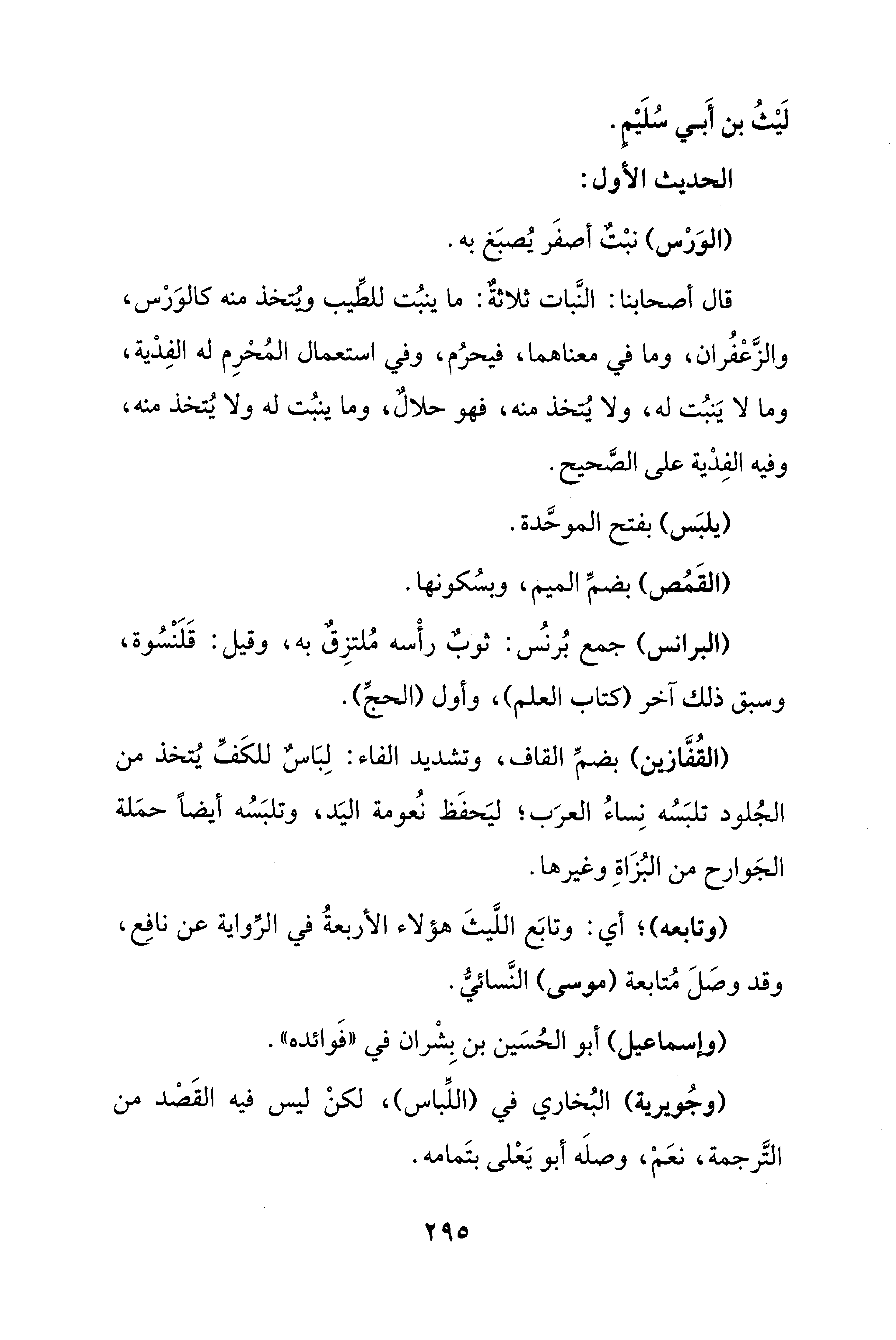 (البرانس) جمع بُرنسُ: ثوبٌ رأْسه مُلتزِقٌ به، وقيل: قَلَنْسُوة، وسبق ذلك آخر (كتاب العلم)، وأول (الحجِّ).