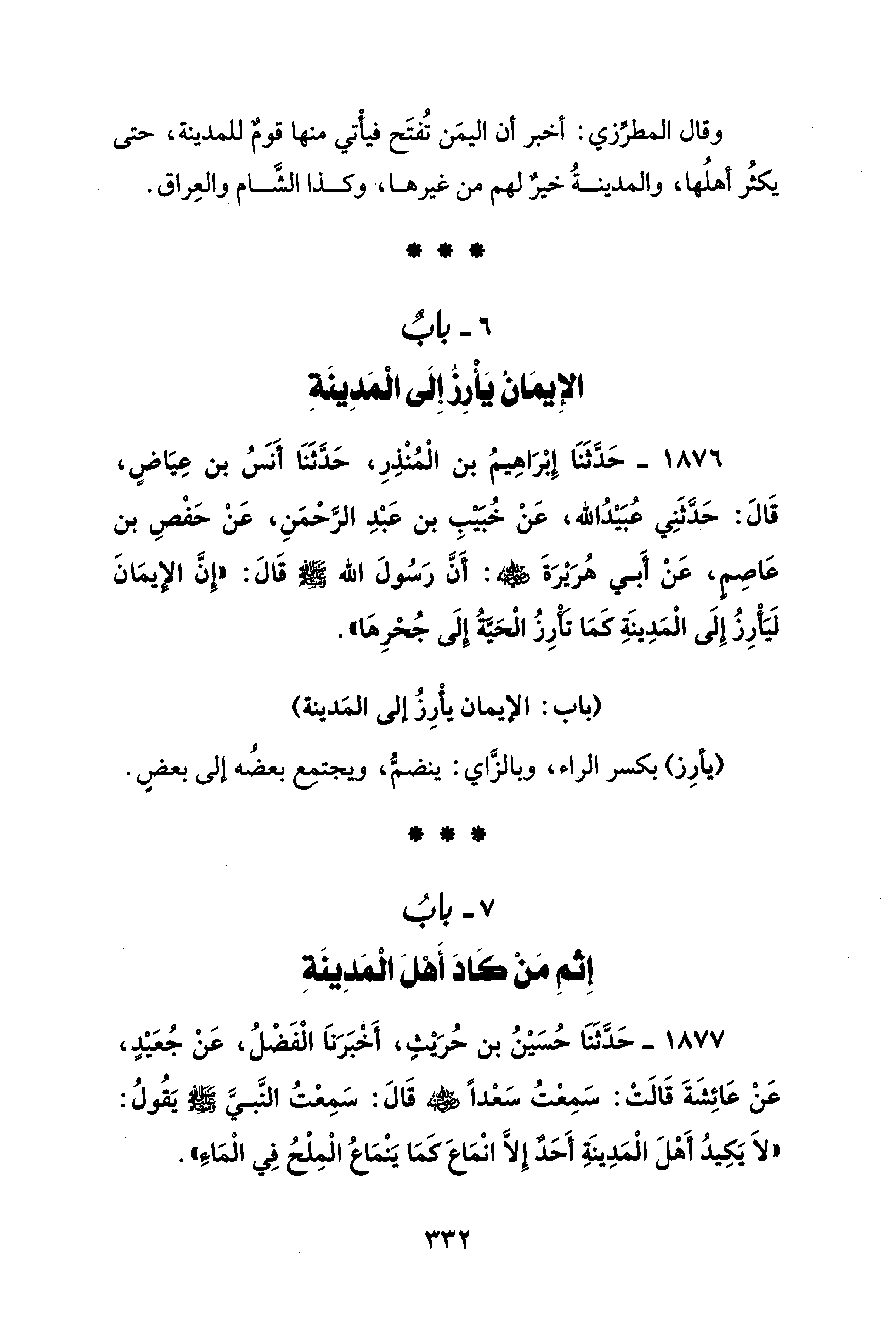 6 - بابٌ الإِيمَانُ يَأْرِزُ إِلَى الْمَدِينَةِ