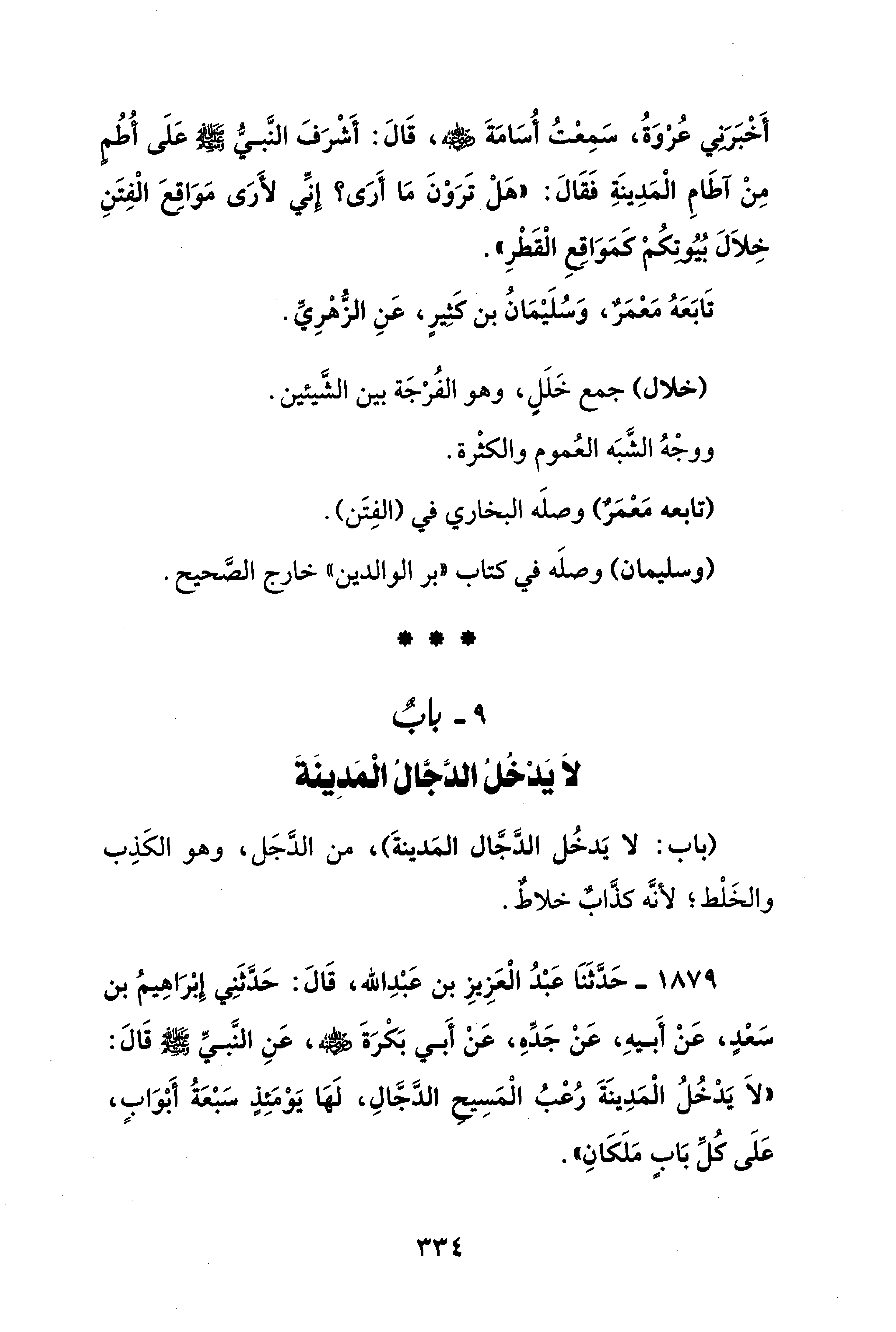 9 - بابٌ لاَ يَدْخُلُ الدَّجَّالُ الْمَدِينَةَ